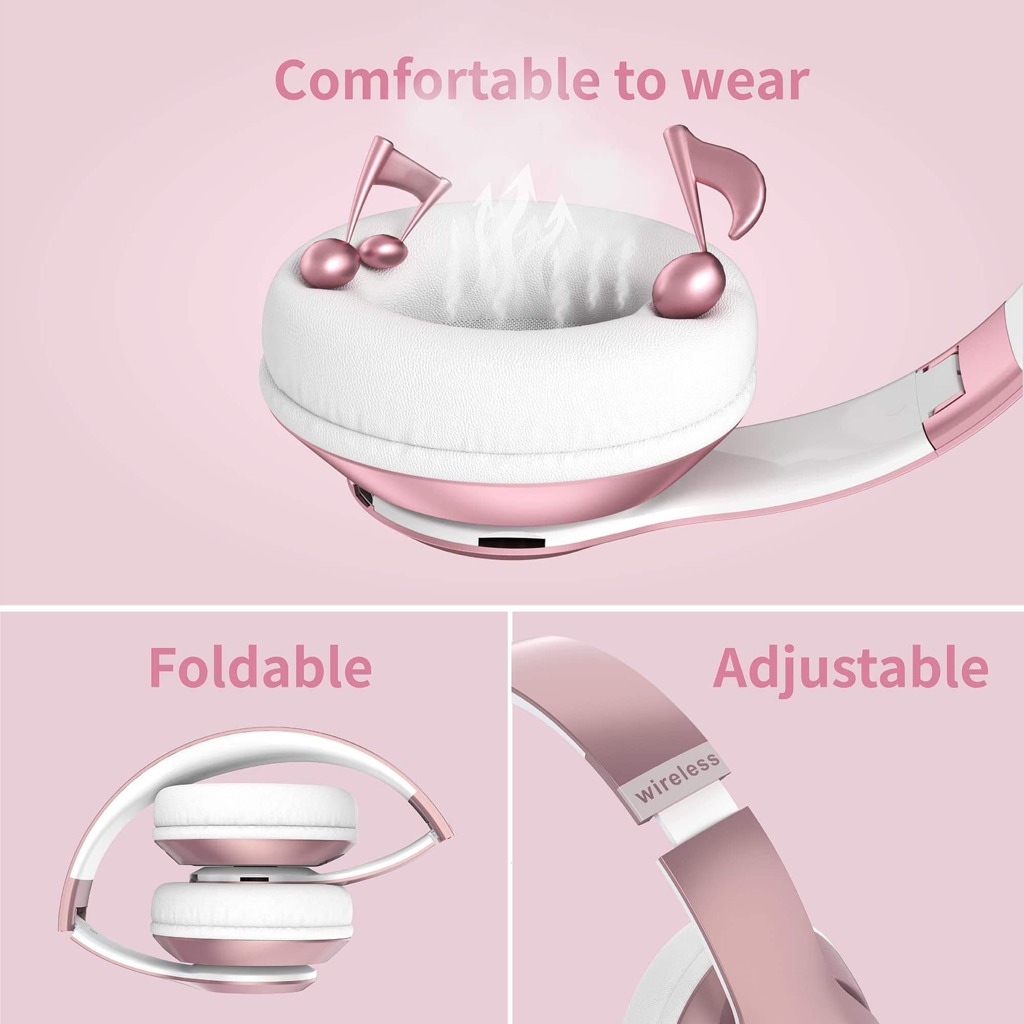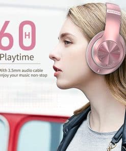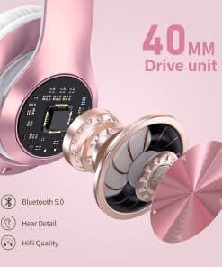 Nuestros audífonos Bluetooth Over-Ear entregan un rendimiento de alta fidelidad estéreo provenientes de dos drivers de 40 mm y un diseño de almohadillas para los oídos, que combinados proporcionan una calidad de sonido HiFi inmersiva superior. Con 6 modos de EQ, que te permiten cambiar libremente entre sonidos de bajo/Jazz/Voz/Rock/Pop/Clásico, cada modo te proporciona un sonido de calidad de CD. Adopta la tecnología Bluetooth 5.0 para una conexión sin fisuras y estable. Con micrófono incorporado para comunicaciones telefónicas claras y sin manos. Hasta 60 horas de reproducción en modo Bluetooth, con cable de audio de 3.5 mm incluido para cambiar a modo con cable cuando la batería se agota. Diseño plegable y cómodo con almohadillas de espuma súper suave y diademas ajustables. Ligeros y fáciles de transportar. Perfectos para clases en línea, oficinas en casa, viajes, deportes y uso diario. Incluye 1 auriculares Bluetooth, 1 cable de audio, 1 cable de carga y 1 manual de usuario. Cubierto con garantía de 12 meses y 100% de satisfacción del cliente.