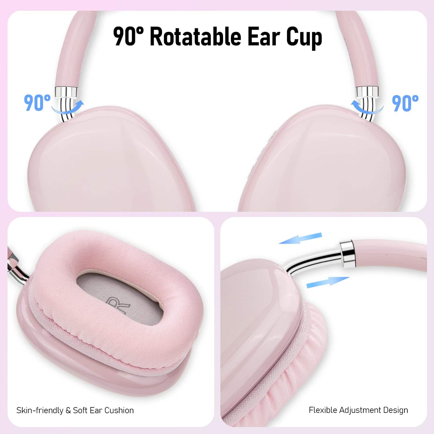 1. Audífonos de alta fidelidad: La unidad de transmisión de marco grande integrada de 40mm proporciona graves más ricos y detalles de calidad de sonido más finos. Nuestros audífonos Bluetooth inalámbricos están diseñados para brindarle una calidad de sonido superior. ¡Sumérgete en la música, incluso al nivel de volumen más bajo!