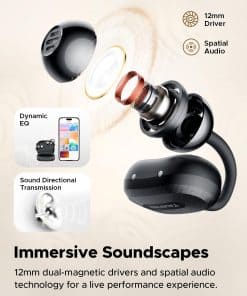 4. 28 horas de duración de la batería: Obtén hasta 8 horas de reproducción con una sola carga y un total de 28 horas con el estuche de carga compacto. El estuche de carga tipo C admite carga rápida, proporcionando 1.5 horas de reproducción con solo 10 minutos de carga. Con resistencia al agua IPX5, estos auriculares son perfectos para entrenamientos, tareas domésticas, trabajo y actividades al aire libre. 5. Llamadas AI-ENC y conexión dual: Con micrófonos duales y cancelación de ruido ambiental impulsada por IA, más un diseño resistente al viento, estos auriculares aseguran conversaciones claras e ininterrumpidas. La conexión multipunto te permite emparejar dos dispositivos a la vez, para que nunca pierdas una llamada o notificación importante. 6. App para personalización: Equipados con el último chipset Bluetooth 5.4 para una estabilidad mejorada y conexión perfecta. Descarga la App Truefree desde la App Store o Google Play para personalizar ajustes, incluyendo EQ predeterminadas y efectos de sonido. Los auriculares también cuentan con controles intuitivos de botones, permitiéndote gestionar la reproducción, ajustar el volumen y responder llamadas con facilidad.