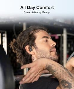 Los audífonos de oído abierto son la opción perfecta para aquellos que desean una experiencia auditiva única y enriquecedora. Con un peso ultraligero de solo 0.25 oz, estos audífonos son increíblemente cómodos de usar durante largos periodos, gracias a su diseño ergonómico con ganchos para las orejas que garantizan un ajuste seguro y cómodo.