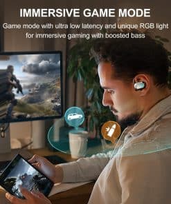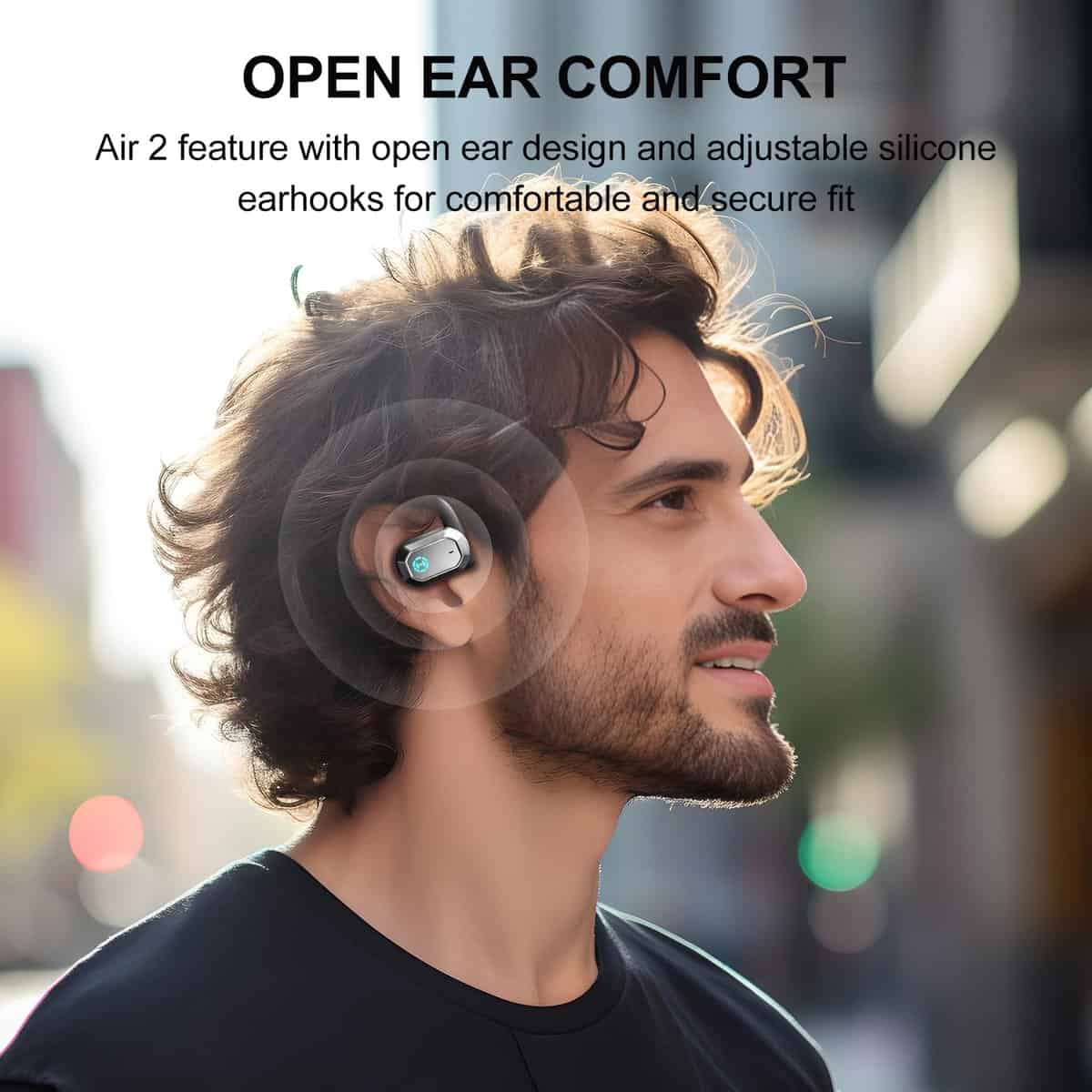 Los audífonos inalámbricos Edifier Air 2 Open Ear son la elección perfecta para aquellos que buscan un ajuste seguro y cómodo durante sus actividades diarias. Con un diseño de oreja abierta que no obstruye el canal auditivo, estos audífonos son ideales para ejercitarse al aire libre o para practicar ciclismo. Los ganchos de silicona ajustables y livianos garantizan un ajuste perfecto, mientras que los drivers dinámicos de 14.2mm y el chipset DSP de baja frecuencia ofrecen un sonido estéreo increíble con graves potentes. El micrófono con cancelación de ruido integrado separa la voz humana de los ruidos ambientales, lo que te permite realizar llamadas claras y nítidas. Además, podrás mantener la conciencia de tu entorno gracias a la tecnología de oreja abierta. Cambia entre el modo de juego, con baja latencia para una experiencia inmersiva, y el modo de música, con un sonido equilibrado para todo tipo de géneros musicales. ¡Haz tuyos los audífonos Edifier Air 2 Open Ear y disfruta de una experiencia auditiva excepcional!