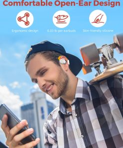 5. Diseño ligero de oído abierto: Solo 0.03 lb por audífonos. El diseño ergonómico proporciona una excelente experiencia de uso, alineándose perfectamente con los contornos naturales de tus oídos. El silicona amigable con la piel es cómodo y seguro para su uso durante todo el día, garantizando un ajuste seguro que no se deslizará.