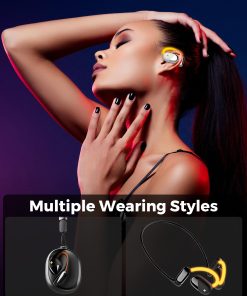 4. Diseño elegante y versátil: La tira LED naranja es elegante y llamativa. Hacer clic cuatro veces puede encender la luz naranja. Proporciona más visibilidad en la oscuridad. Adecuado para corredores nocturnos. El exclusivo gancho trasero puede transformar los audífonos en un estilo de collar. El cordón permite su uso alrededor del cuello. Personalízalo según tus necesidades.