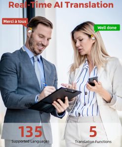 2. Audífonos de traducción de IA en tiempo real: Dispositivo de traducción inteligente de 135 idiomas que soporta modo de chat de IA, modo de hablar libre, modo de máquina de traducción, modo de auriculares + teléfono y modo de nota de voz, logrando una comunicación sin esfuerzo durante el trabajo, estudio y viajes.