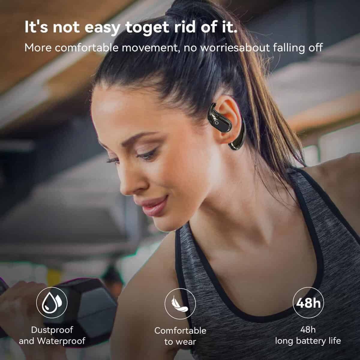 1. Bluetooth 5.4 estable y amplia compatibilidad: Los auriculares con ganchos para la oreja cuentan con la capacidad Bluetooth 5.4 para una conexión fuerte y continua dentro de un rango de 30 pies. La velocidad de transmisión mejorada garantiza una experiencia de escucha de baja latencia. Los auriculares deportivos son compatibles con una variedad de dispositivos habilitados para Bluetooth, incluidos teléfonos inteligentes, televisores, computadoras y laptops.