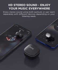 Los audífonos inalámbricos HTC True Wireless Bluetooth 2 ofrecen una calidad de sonido estéreo inmersiva que te permite disfrutar al máximo de tu música favorita en cualquier momento. Son diseñados ergonómicamente para un ajuste perfecto en tus oídos, reduciendo eficazmente el ruido externo para una experiencia auditiva óptima. Con control táctil inteligente en ambos oídos y micrófono integrado, podrás gestionar tus llamadas y música de forma fácil y conveniente. Además, estos audífonos proporcionan hasta 32 horas de reproducción con el estuche de carga, lo que te permite disfrutar de música ininterrumpida durante todo el día. Con protección IPX5 a prueba de sudor, son ideales para actividades deportivas y diarias. Además, vienen con varios accesorios y una garantía extendida de 360 días para tu total tranquilidad. Disfruta de la libertad de la música inalámbrica con los audífonos HTC True Wireless Bluetooth 2.