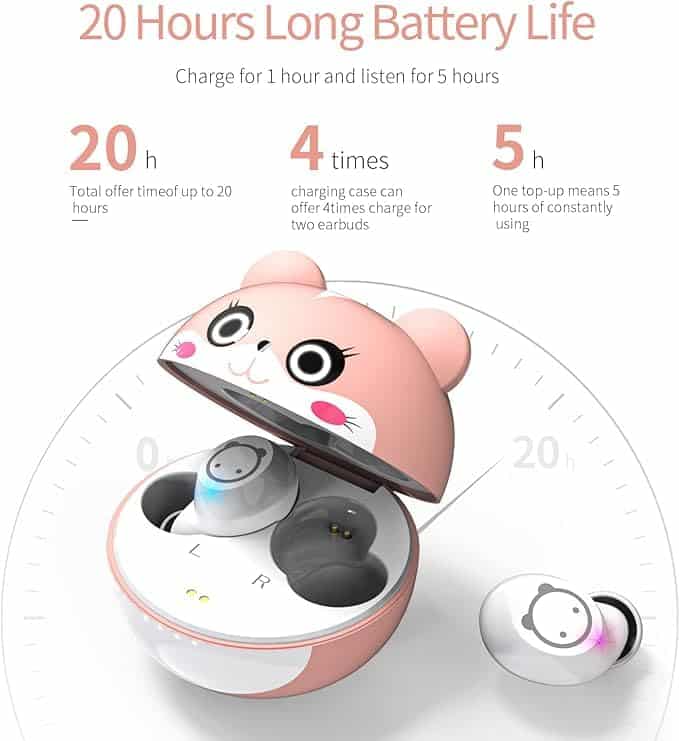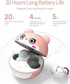 5. Carga sobre la marcha Los auriculares inalámbricos pueden durar de 4 a 6 horas con una sola carga, y la caja de carga de dibujos animados se puede cargar 3-5 veces en el viaje, con 5 minutos de carga y 2 horas de llamadas, brindándote el disfrute final.