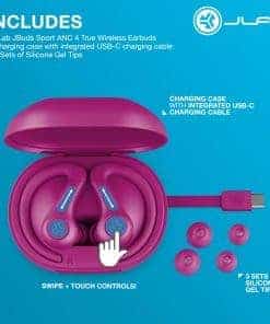 Descubre una experiencia auditiva excepcional con los audífonos inalámbricos JLab JBuds Sport ANC 4. Estos audífonos rosados vienen con un estuche de carga para mayor comodidad. Con controles táctiles y de deslizamiento, puedes manejar tu música y llamadas de manera sencilla. La cancelación activa de ruido híbrida te permite sumergirte en tu música sin distracciones. Además, la conexión multipunto te permite alternar entre dispositivos con facilidad. Personaliza tu experiencia auditiva con la aplicación de ajustes personalizados. ¡Haz que cada momento sea especial con los audífonos JLab!