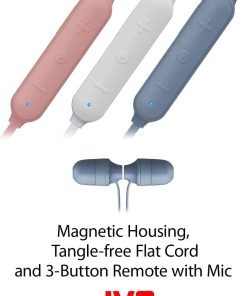 Audífonos inalámbricos JVC Marshmallow, resistencia al agua (IPX4), batería larga duración de 8 horas, ajuste seguro y cómodo con banda de cuello suave y auriculares de espuma de memoria – HAFX35BTW (Ivory)