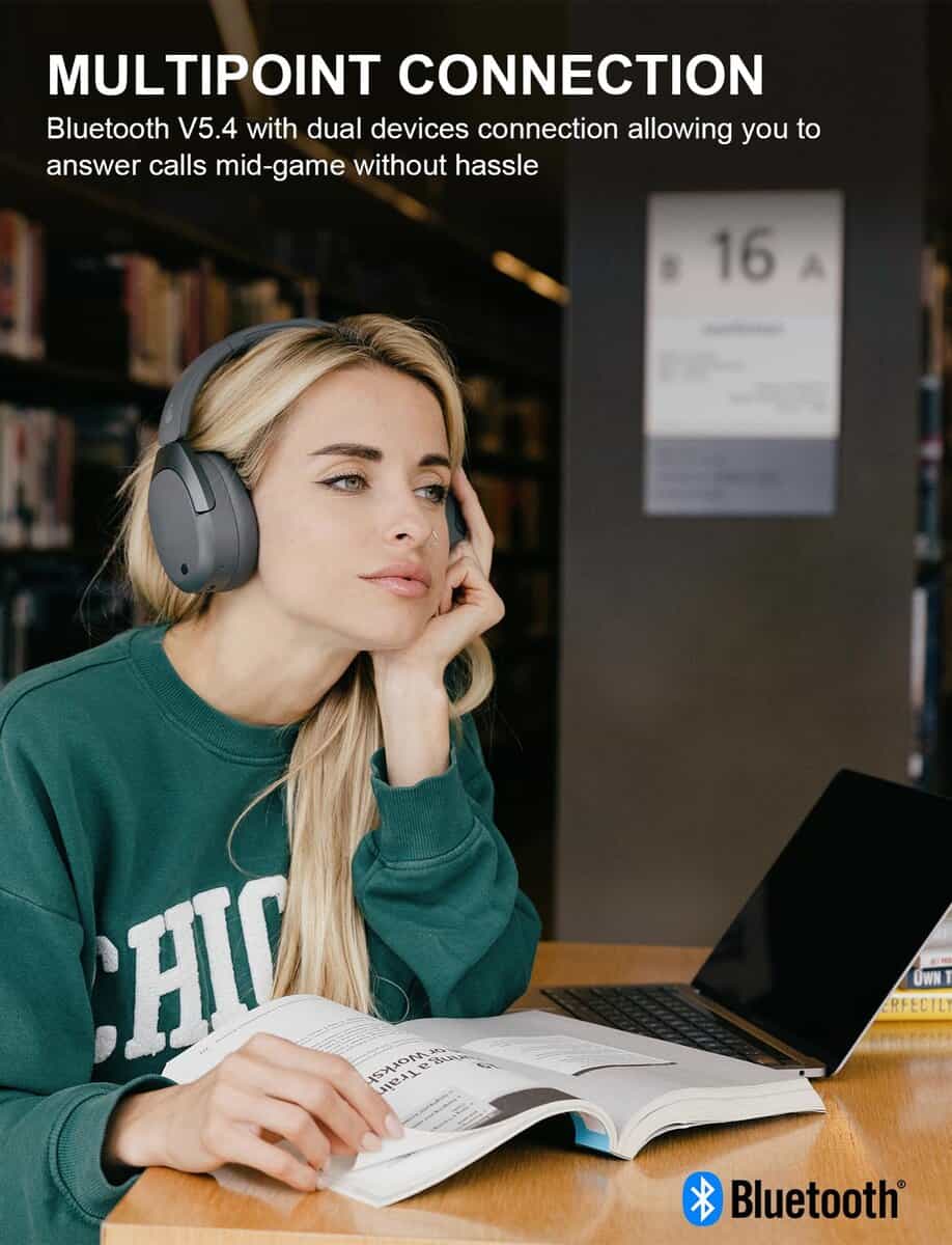 4. Conexión Multipunto Bluetooth 5.4 – El nuevo Bluetooth 5.4 admite la conexión de dos dispositivos para cambiar instantáneamente entre trabajo y entretenimiento.