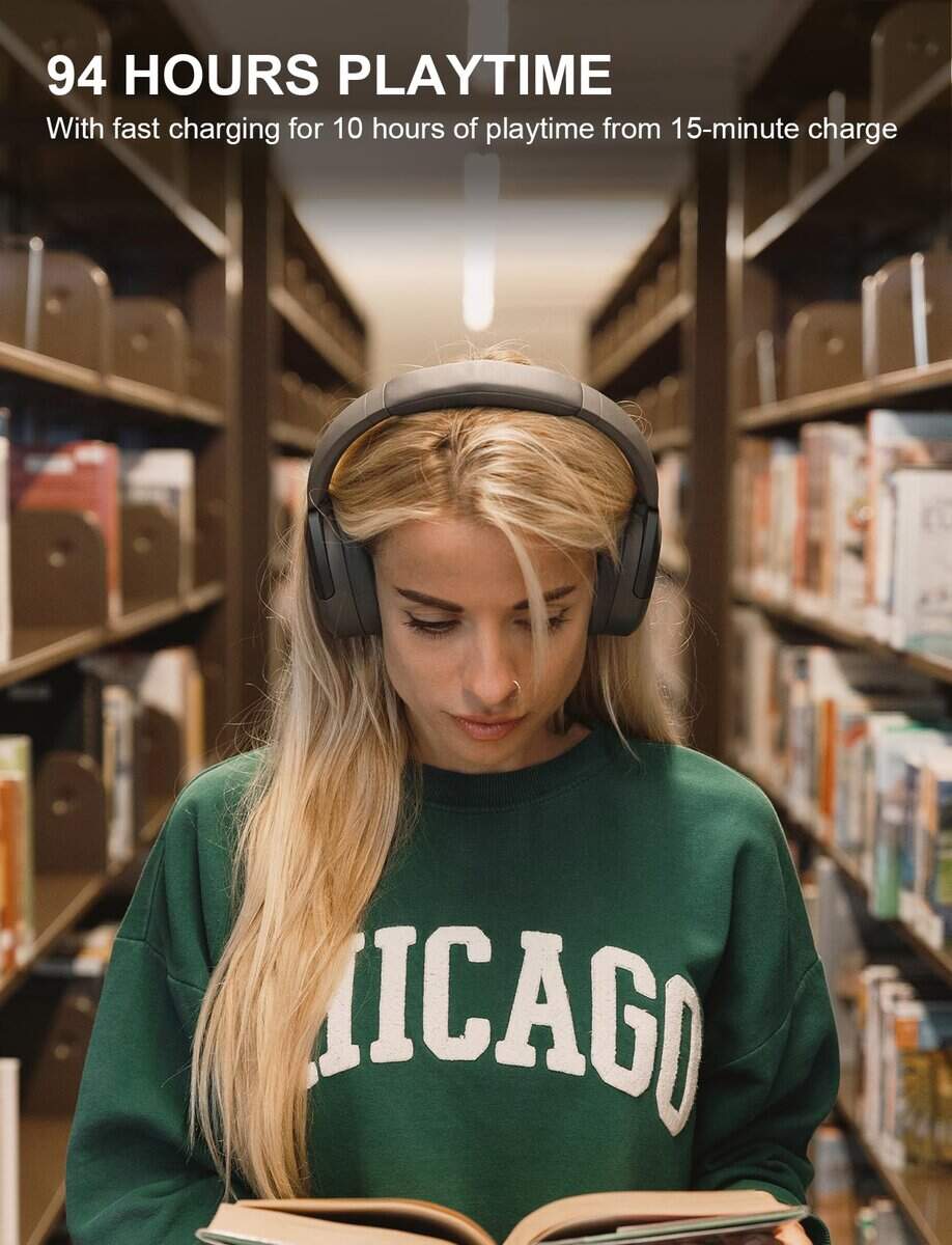 3. Ideal para Viajar – 94 horas de tiempo de reproducción con ANC apagado y 54 horas de tiempo de reproducción con ANC cubrirán un vuelo alrededor del mundo sin necesitar recargar. Y si se queda sin batería, 15 minutos de carga rápida obtienen 10 horas de tiempo de reproducción con ANC apagado.