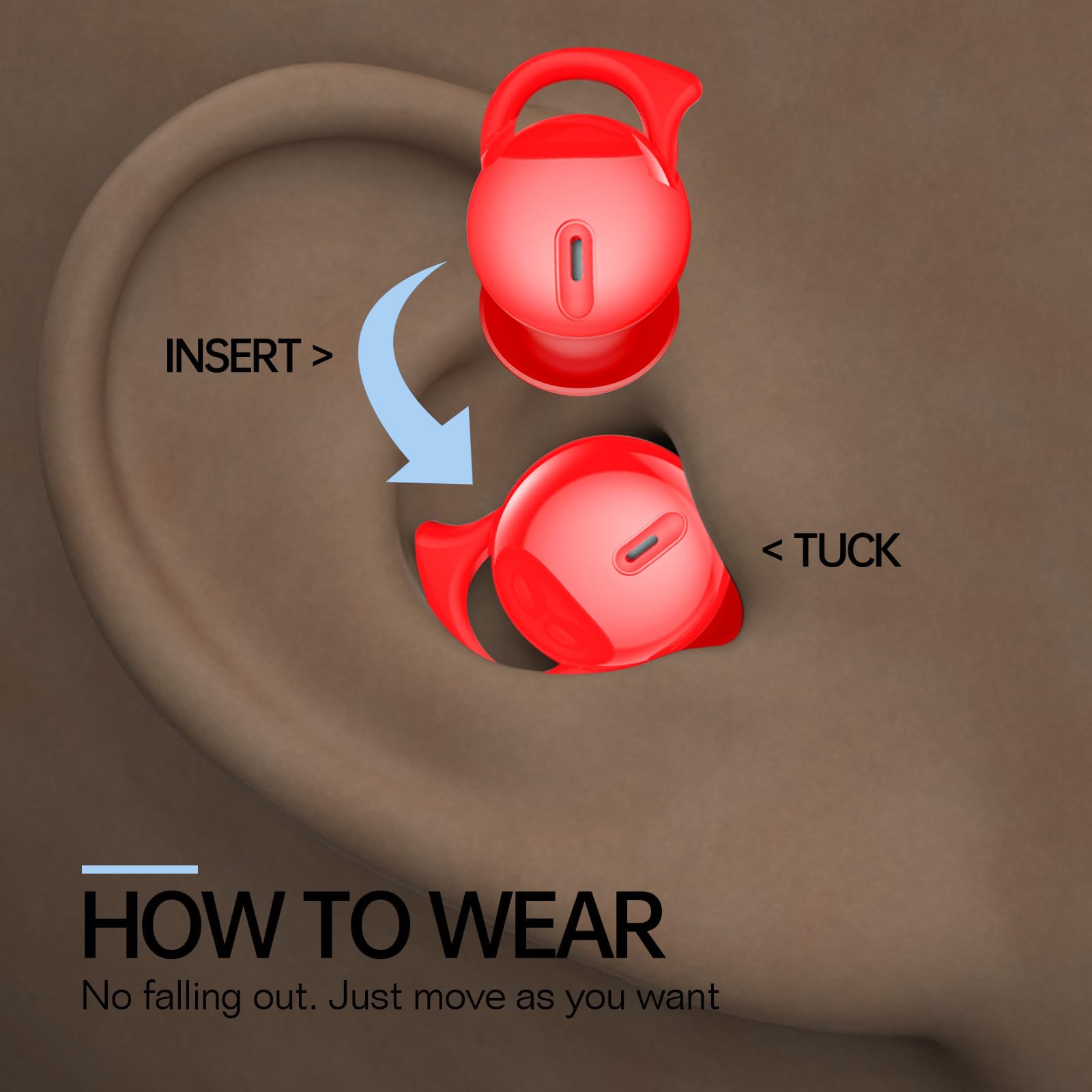 Audífonos Inalámbricos para Dormir Invisibles, Auriculares para Dormir para los que Duermen de Lado, Sleepbuds Cómodos con Bloqueo de Ruido, Bluetooth 5.3 – Rojo