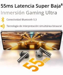 Audífonos inalámbricos reales Buds Air 6 Pro, Reducción de ruido de 50dB, Cancelación de ruido adaptativa para oídos y entorno, Sonido Hi-Res, LDAC, Audio 3D, Batería de 40H, Carga inalámbrica, Bluetooth 5.3: Los audífonos inalámbricos reales Buds Air 6 Pro ofrecen un impresionante 50dB de Cancelación de ruido inteligente de mar profundo (ANC) 2.0. Esto se traduce en una reducción significativa del ruido ambiental, permitiéndote concentrarte en tu música o audiolibros sin distracciones. Además, la reducción de ruido de frecuencia ultra ancha de 4000Hz aborda un rango más amplio de ruido, mientras que 6 micrófonos integrados con cancelación de ruido IA filtran activamente los sonidos no deseados para una experiencia auditiva realmente inmersiva. Los audífonos inalámbricos reales Buds Air 6 Pro van más allá de una calidad de audio excepcional. Por ejemplo, un algoritmo de experiencia auditiva personalizada adapta el perfil de sonido a tus preferencias. Además, el sonido espacial 3D crea un paisaje sonoro más amplio y realista, perfecto para películas y juegos. Disfruta de sesiones de escucha ininterrumpidas con los audífonos inalámbricos reales Buds Air 6 Pro. Los audífonos ofrecen hasta 40 horas de tiempo total de reproducción con el estuche de carga, lo que significa que puedes escuchar durante días con una sola carga. Además, la conectividad Bluetooth 5.3 garantiza una conexión estable y fiable, mientras que la baja latencia ultra de 55ms garantiza una sincronización perfecta para videos y juegos. Diseñados para tu estilo de vida, los audífonos inalámbricos reales Buds Air 6 Pro cuentan con un diseño elegante y cómodo. Con una clasificación de resistencia al agua IP55, pueden manejar salpicaduras ligeras y entrenamientos sin preocupaciones. Además, los controles táctiles ofrecen una reproducción de música conveniente y gestión de llamadas, mientras que la aplicación realme Link desbloquea más opciones de personalización. Versión Global