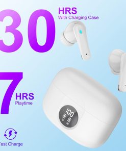 2. Vida útil extendida de la batería Disfruta de más de 7 horas de tiempo de reproducción con ANC apagado, y más de 4 horas con ANC encendido, extendiéndose hasta 30+ horas con el elegante estuche de carga.