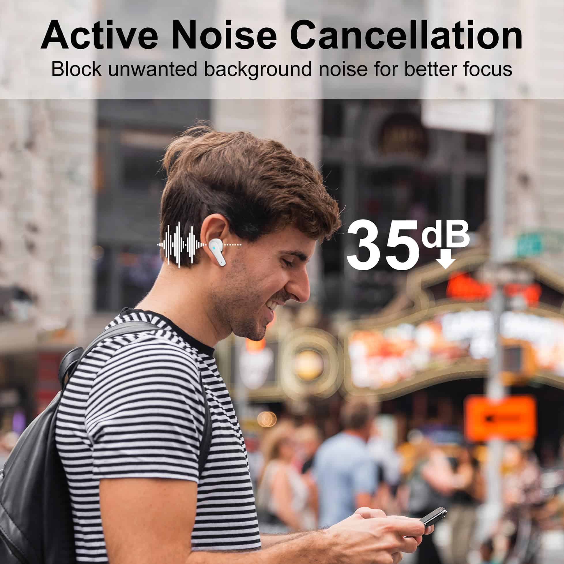 1. Tecnología inmersiva de ANC Sumérgete en un mundo de sonido puro bloqueando ruidos molestos hasta -35dB con nuestra avanzada función de Cancelación Activa de Ruido (ANC).