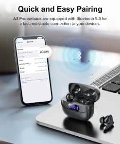 Estos audífonos inalámbricos utilizan controladores de titanio de 13.4mm y están equipados con una reducción de ruido de llamadas considerada para proporcionarte una calidad de sonido clara. Ya sea que estés escuchando música, haciendo llamadas o viendo videos, estos auriculares bluetooth te permiten experimentar un sonido inmersivo. El diseño ergonómico de los auriculares bluetooth intraurales garantiza un ajuste cómodo y seguro para un uso a largo plazo y no es fácil de caerse. Los audífonos con cancelación de ruido son compatibles con iOS, Android, PC, smartwatches y otros dispositivos, lo que te permite disfrutar de tu contenido favorito en cualquier momento y lugar. Impermeables y duraderos, ideales para correr, entrenar, hacer ejercicio, viajar y otras ocasiones, y no se dañan por el sudor o la lluvia. Al mismo tiempo, también te proporcionaremos un servicio postventa de alta calidad. Si tienes alguna pregunta, no dudes en contactarnos.