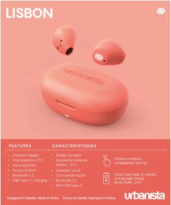 1. Sonido más allá del tamaño Pierdete en una ensoñación colorida con Urbanista Lisboa. Estos auriculares inalámbricos te dan completa libertad para escuchar tu música en cualquier momento y lugar. Los auriculares más pequeños que hemos fabricado; ofreciendo graves fuertes y potentes y un sonido exquisito y cristalino. 2. Elegante y Funcional Encarnando la simplicidad del diseño escandinavo, los auriculares Urbanista Lisbon son pequeños, con solo 4 gramos por cada auricular, pero son engañosamente poderosos. Lisbon es fácil de llevar a cualquier lugar ofreciendo un audio que deja una impresión duradera. 3. Duración de la Batería Duradera Los auriculares inalámbricos Urbanista Lisbon con Bluetooth duran 9 horas por cada carga completa. Disfruta de 27 horas de tiempo de reproducción total gracias a las dos cargas adicionales que ofrece el pequeño estuche de carga rápida de USB tipo C, lo que significa un fácil acceso a tu música y podcasts durante todo el día. 4. Verdadera simplicidad Disfruta de la libertad de movimiento inalámbrico con los controles táctiles intuitivos de Lisboa, para una experiencia manos libres que mantiene la escucha simple cuando estás en movimiento. Con nuestra ala universal GoFit, Lisbon puede adaptarse cómoda y seguramente a orejas grandes y pequeñas. 5. Totalmente Compatible Los auriculares Urbanista Lisbon utilizan la tecnología Bluetooth 5.2 actualizada para la mejor experiencia de audífonos inalámbricos True Wireless con una conexión más rápida a los dispositivos y la conexión de Bluetooth más estable durante la reproducción. También puedes vincular a Siri y Google Voice Assistant a tus audífonos Lisbon para una experiencia de escucha manos libres perfecta.
