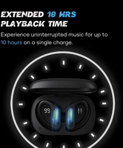 Tiempo de reproducción extendido. Experimenta música ininterrumpida durante hasta 10 horas con una sola carga. Disfruta de tus canciones favoritas todo el día sin la necesidad de recargar constantemente. Además, cuando se combina con el estuche de carga de 2000mAh, obtienes asombrosas 120 horas de música continua de felicidad. Capacidad de batería de 2000mAh del estuche de carga.