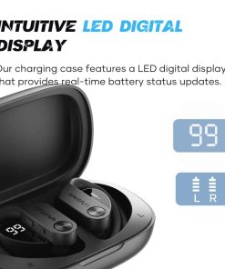 Pantalla digital LED intuitiva. Nuestro estuche de carga cuenta con una pantalla digital LED que proporciona actualizaciones en tiempo real del estado de la batería. Proporcionando actualizaciones instantáneas sobre la capacidad restante de la batería y el estado de carga de tus audífonos.