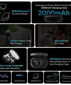 Ajuste seguro para estilos de vida activos. Diseñados con ganchos para las orejas, los audífonos Wavefun XBuds 5 se mantienen firmemente en su lugar durante tus entrenamientos más intensos. Botones físicos para control de volumen, saltar canciones y control multifunción aseguran que no haya toques accidentales, incluso durante sesiones sudorosas.