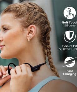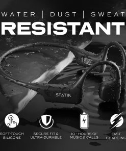 STATIK Aktive Audífonos de Conduccion Osea están diseñados para actividades atléticas como correr, hacer senderismo, andar en bicicleta, entrenamientos de gimnasio y más, para que puedas mantenerte conectado a tu música sin importar cuánto te muevas. Son perfectos auriculares de entrenamiento activo para hombres y auriculares de entrenamiento para mujeres con un diseño cómodo de oído abierto que no bloquea el ruido de fondo. No dejes que el clima te detenga. Los auriculares de conducción ósea STATIK Aktive son resistentes al agua y al sudor con una clasificación de impermeabilidad IPX8. Esté listo para entrenamientos duros y aventuras robustas. Con la tecnología BlitzCharge, obtienes hasta 5 horas de música y llamadas, asegurando que tus audífonos bluetooth de conducción ósea estén a la altura de tu entrenamiento. ¿Necesitas un impulso rápido? Obtén 1.5 horas de carga en solo 10 minutos o una carga completa en solo 1 hora. Escucha toda la música que necesitas con la transmisión de audio inalámbrico, hasta horas de tiempo de reproducción y una aplicación compatible con Alexa para iOS y Android. Los audífonos de conducción ósea bluetooth STATIK Aktive con micrófono están diseñados para ofrecer comodidad y seguridad. Di adiós a la fatiga auditiva y los oídos obstruidos por el uso prolongado de los auriculares. Estos auriculares de conducción ósea proporcionan un ajuste seguro sin ser demasiado ajustados como otros auriculares de conducción ósea con tecnología de auriculares inalámbricos de oído abierto.