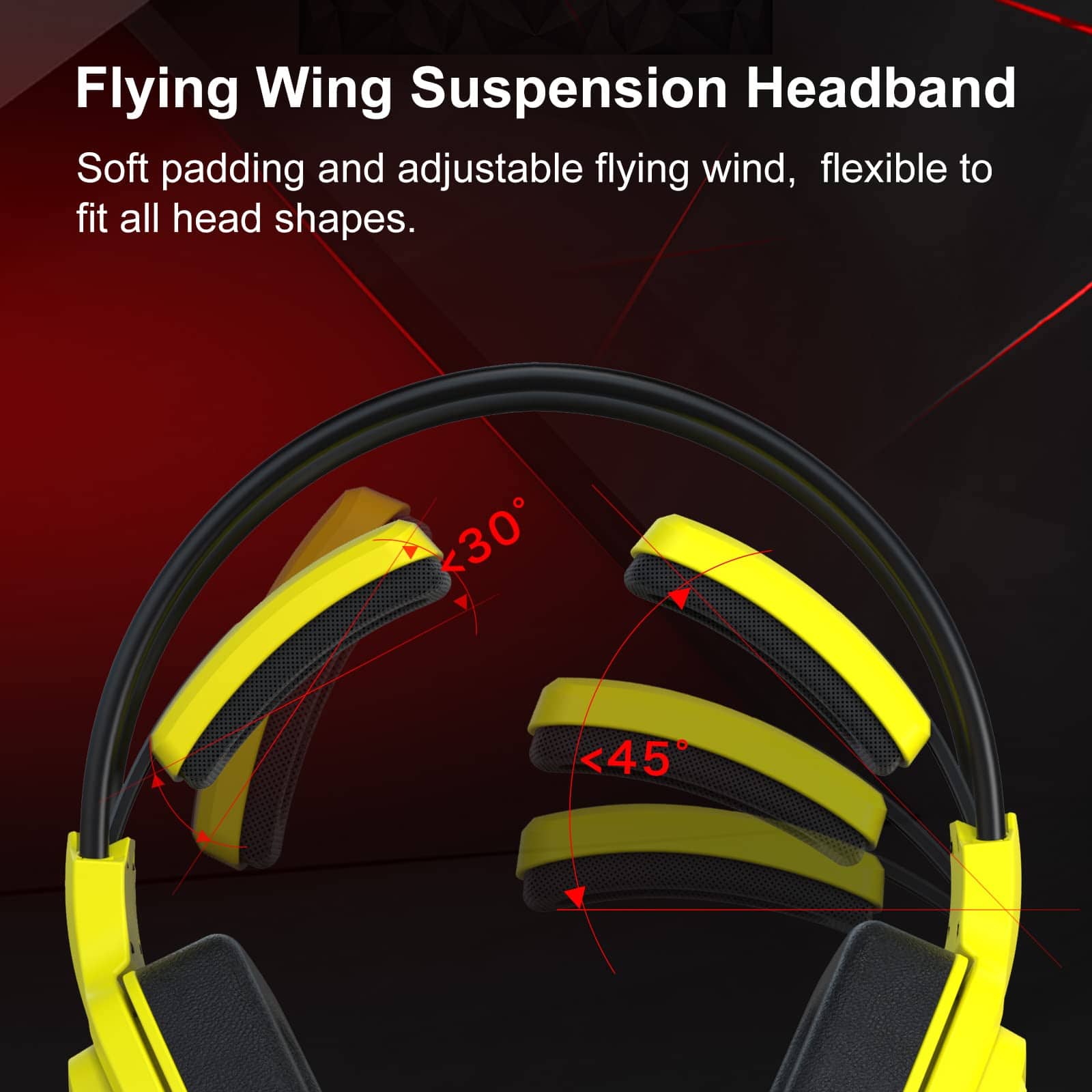 4. Cómodo de Usar – El acolchado autoajustable de ala voladora y el almohadilla de oreja de cuero sintético acolchado cubierta con espuma viscoelástica, además de su peso ligero, proporcionan nada más que comodidad.