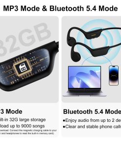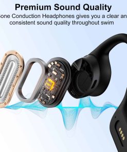 Bone Conduction Swimming Headphones, IPX8 Waterproof MP3 Player Open-Ear Headphones, Bluetooth 5.4 Bone Conduction Headphones, Wireless Sports Earbuds for Swimming, Running, Cycling (Black)