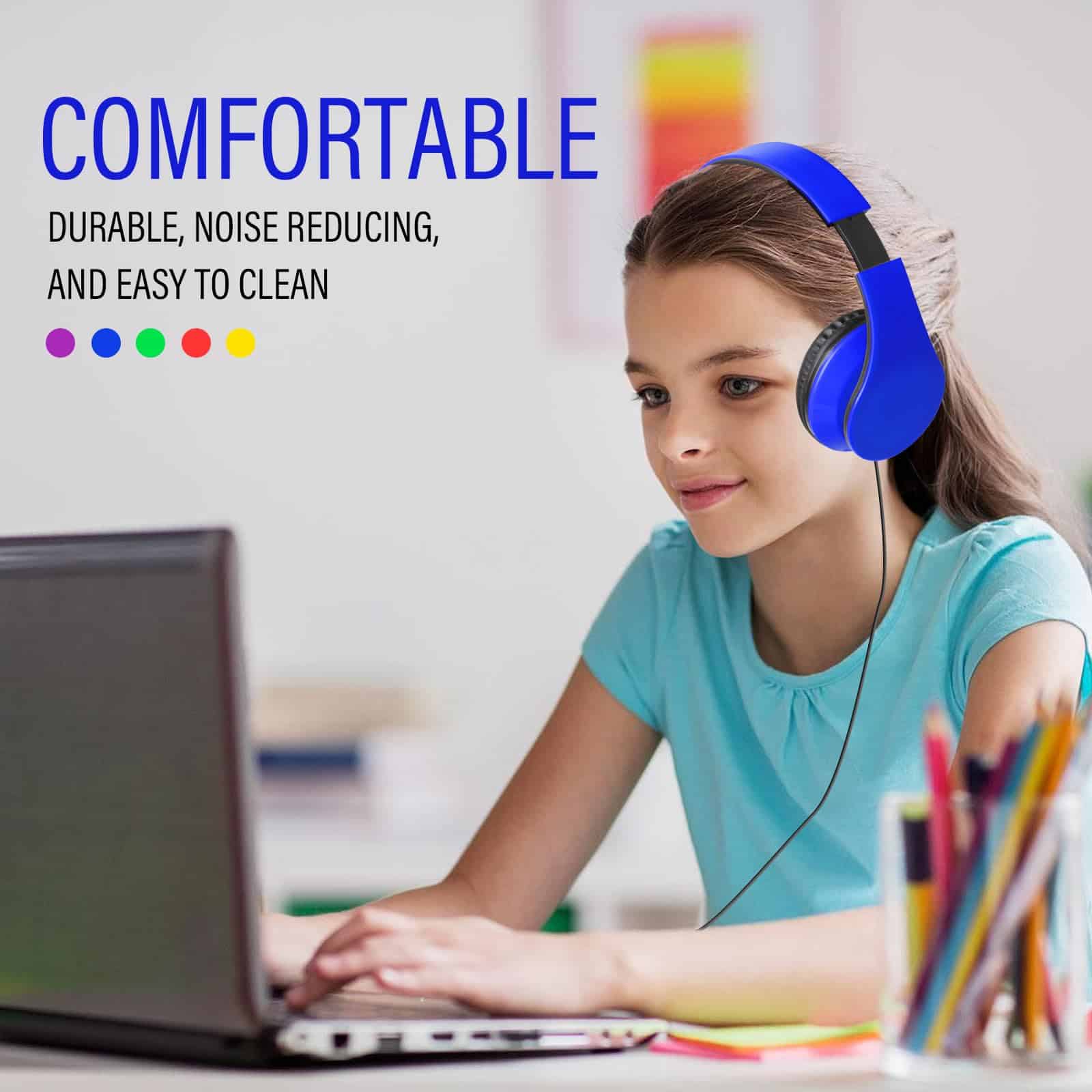 2. Con suaves almohadillas de cuero sintético transpirable sobre la oreja y una diadema acolchada gruesa, estos audífonos eliminan la fatiga del oído y proporcionan la máxima comodidad durante horas de uso. La diadema ajustable es perfecta para niños y adolescentes de diferentes tamaños.