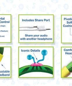 Audífonos para niños de Cocomelon para la escuela, el hogar o los viajes. Conecta cualquier dispositivo, incluidos teléfonos inteligentes, tabletas y computadoras a través del conector de 3.5 mm para disfrutar de un sonido de alta calidad. El control de volumen para padres proporciona niveles de sonido aptos para niños al escuchar música, ver películas, TV y YouTube (consulta el panel trasero del empaque para más detalles). Utiliza el puerto de compartir incluido para conectar dos pares de audífonos con cable al mismo dispositivo y escuchar música/audio con amigos. Visita la tienda de la marca ekids para más audífonos para niños. Los cómodos audífonos cuentan con una diadema ajustable y almohadillas suaves para los oídos para brindar un ajuste personalizado al usar los audífonos para la escuela, el hogar o los viajes. ¡Disfruta de una comodidad duradera durante las clases, los viajes por carretera y los viajes en avión también! Los audífonos con diadema presentan gráficos lindos y coloridos inspirados en el show popular. Este diseño adorable se ve genial tanto en niños como en niñas. Los audífonos de Cocomelon son un gran regalo para los niños. Audífonos ideales para el aprendizaje informático y las actividades escolares. ¡Visita la tienda de la marca ekids para explorar más audífonos para niños!