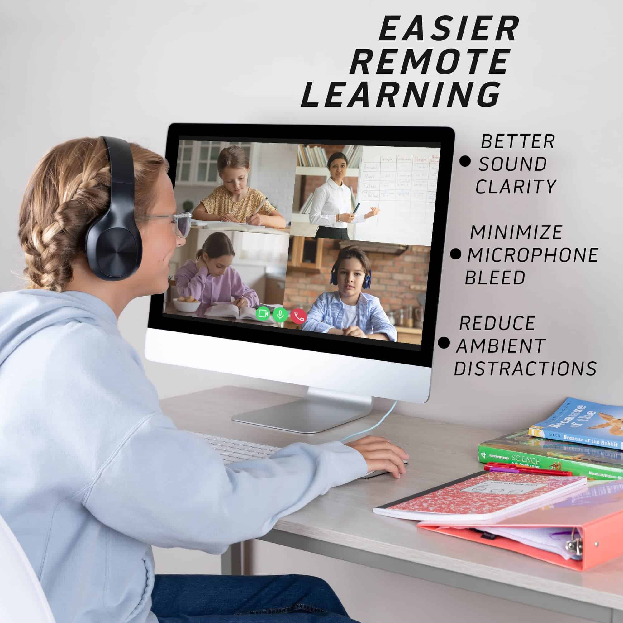 3. Comunicación Fácil Tus audífonos escolares para niños con micrófonos son excelentes herramientas para el aprendizaje remoto a través de videollamadas. Presiona un botón para contestar llamadas y disfruta de la conveniencia compacta de tu micrófono en línea.