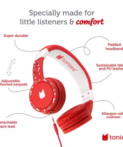 Conoce los audífonos Tonies, especialmente diseñados para pequeños oyentes con un límite de 85 dB seguro para niños. Los audífonos Tonies se mantienen cómodos a medida que su hijo crece, con almohadillas para los oídos ajustables y una diadema acolchada. El diseño plegable es ideal para almacenamiento y viajes. Disponible en seis colores para combinar con su Toniebox.
