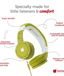 Conoce los Audífonos Tonies, especialmente diseñados para pequeños oyentes con un límite seguro de 85 dB. Los audífonos Tonies se mantienen cómodos a medida que tu hijo crece, con almohadillas ajustables y una diadema acolchada. El diseño plegable es ideal para guardar y viajar. Disponibles en seis colores para combinar con tu Toniebox.