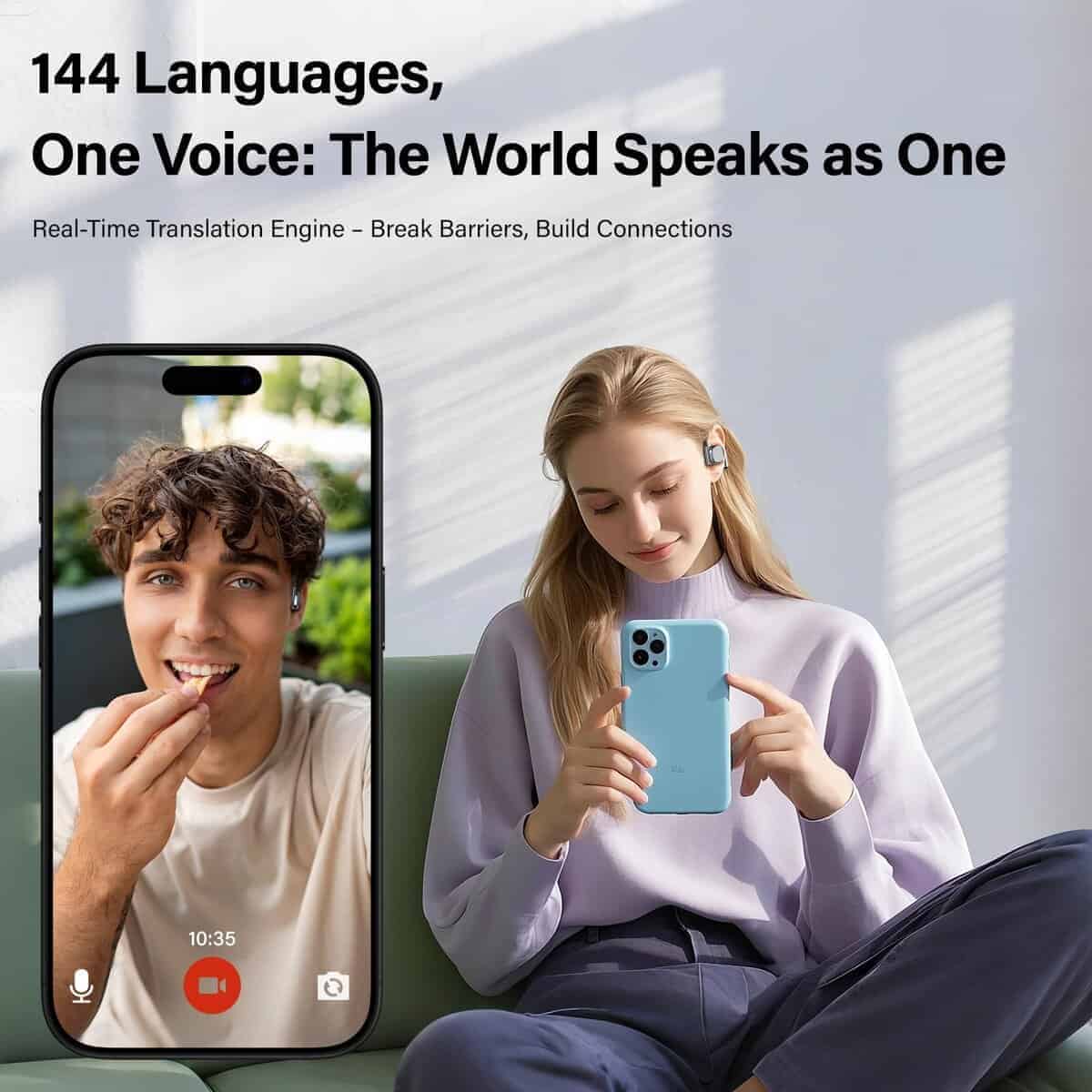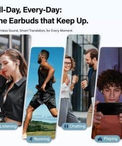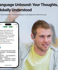Estos audífonos de traducción admiten 144 idiomas, ofreciendo traducción instantánea y sin problemas para viajes, reuniones de negocios o estudios. Rompe las barreras del idioma al instante con estos audífonos de traducción en tiempo real, permitiendo conversaciones fluidas en cualquier situación. Minimiza el ruido de fondo para llamadas y conversaciones de calidad profesional con tecnología avanzada de cancelación de ruido ENC. Los audífonos de traducción están diseñados para un ajuste cómodo y seguro, ya sea para viajes de negocios, viajes internacionales o estudios. Elige entre tres modos de traducción inteligente en estos audífonos de traducción en tiempo real: Modo Altavoz para traducciones rápidas, Modo Táctil para traducción con un toque y Modo de Habla Libre para conversaciones en tiempo real sin manos. Los audífonos de traducción vienen con una pantalla de energía LED y una iluminación ambiental, combinando funcionalidad y estilo. Perfectos para viajes y negocios, estos audífonos aseguran que te mantengas conectado todo el día, con un estuche de carga moderno y elegante.