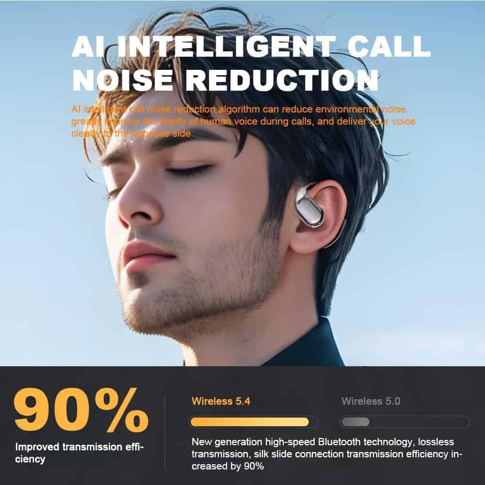 5. CANCELACIÓN DE RUIDO INTELIGENTE: Di adiós a las distracciones con nuestra tecnología avanzada de reducción de ruido. Ideal para entrenamientos, actividades al aire libre o uso diario, estos auriculares filtran inteligentemente el ruido de fondo para una escucha enfocada