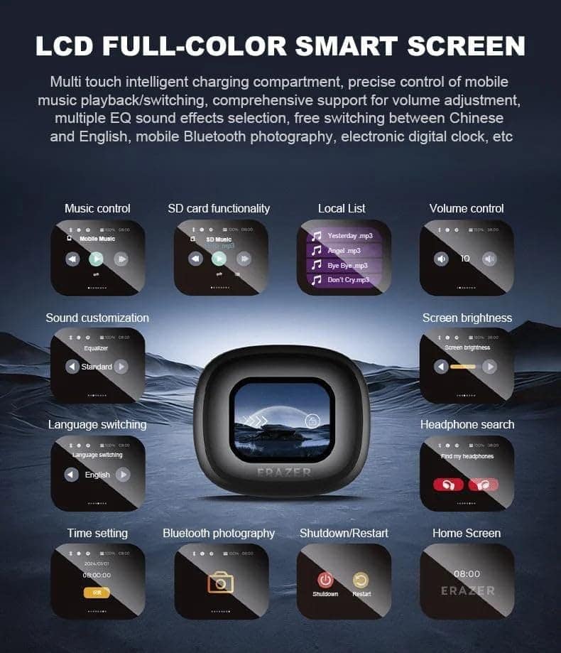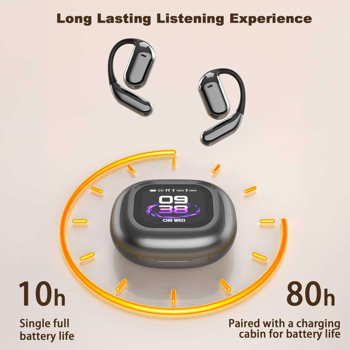 1. CONTROL DE PANTALLA TÁCTIL: control de pantalla táctil a color, operación multifuncional, estuche de carga inteligente único te da acceso directo a todas las funciones clave de los auriculares sin necesidad de una aplicación para smartphone. No necesitas usar tu teléfono para controlar las funciones de la aplicación de los auriculares, simplemente toca la pantalla del estuche de carga para una experiencia verdaderamente fluida.