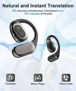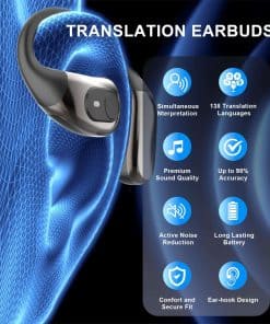 Los audífonos traductores 3-en-1 de EXCECAR admiten traducción, reproductor de música y llamadas telefónicas; el dispositivo traductor de idiomas tiene una larga duración de batería; diseñado para adaptarse a la oreja de la mayoría de las personas, ideal para usar durante mucho tiempo, combinado con un diseño ligero para facilitar su transporte. Ofrece modos para reuniones, viajes, presentaciones, clases, negocios, charlas diarias, educación para mejorar la eficiencia de la comunicación.