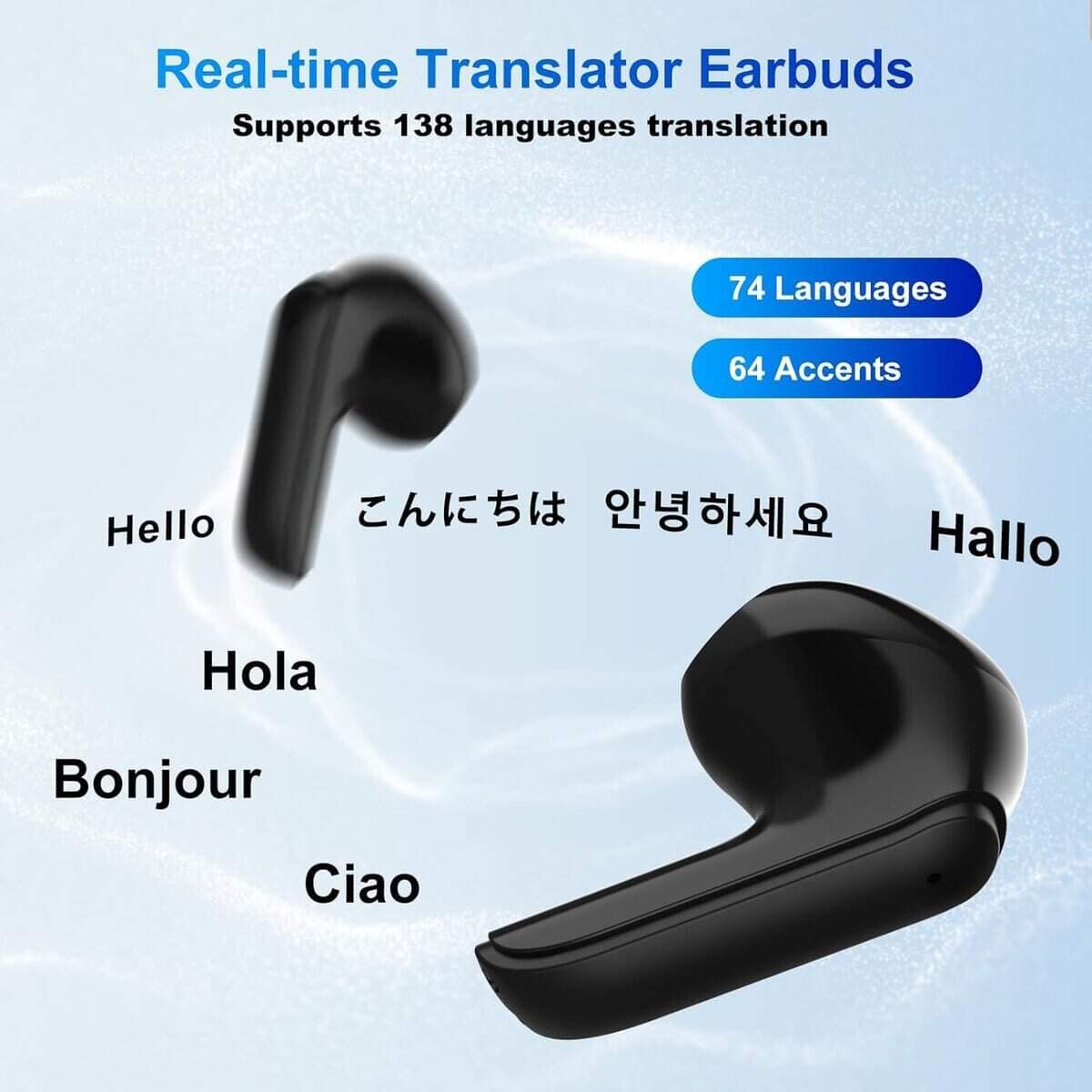 2. Traducción en línea Experimente una traducción rápida y precisa en 138 idiomas y acentos con nuestros audífonos traductores Bluetooth, incluyendo funcionalidad de audífonos traductores instantáneos, mejorando la comunicación global sin esfuerzo.