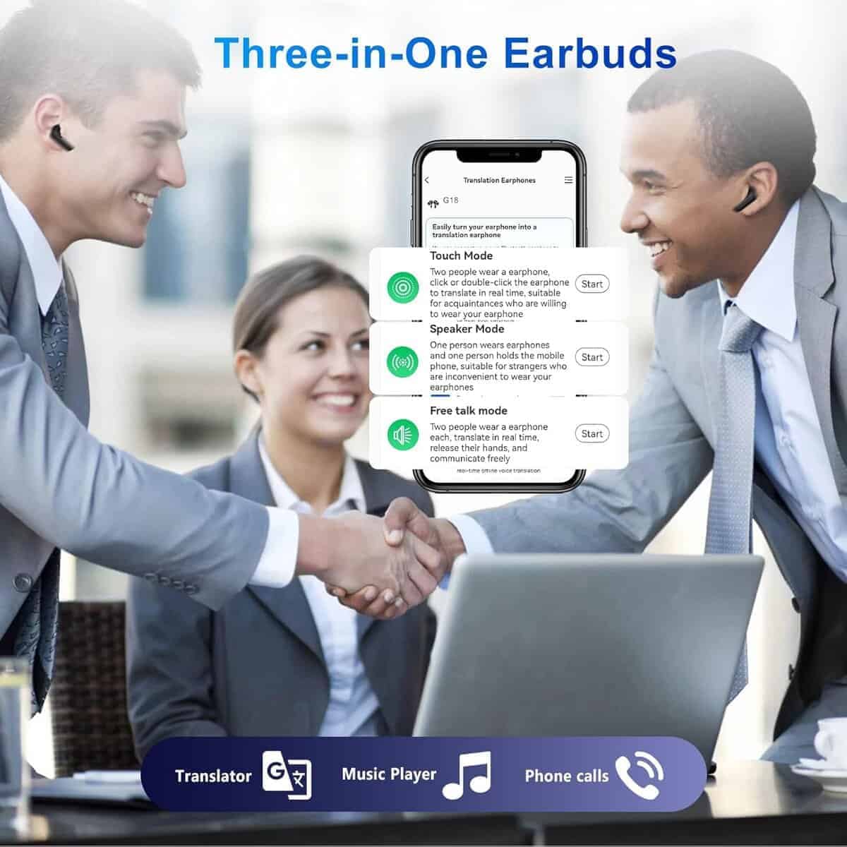 3. Audífonos tres en uno Estos audífonos traductores de idiomas no solo pueden traducir y reproducir conversaciones continuas en solo unos segundos, sino que también pueden servir como auriculares normales para transmitir música y realizar llamadas telefónicas, mejorando su experiencia de comunicación y ofreciendo una conveniencia incomparable.