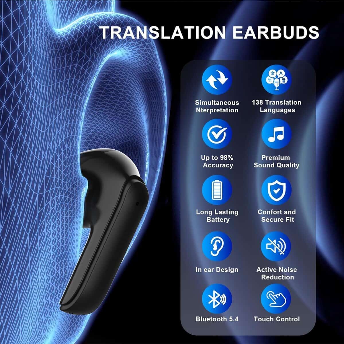 5. Excelente Calidad de Sonido Disfrute de una excelente calidad de audio con audífonos traductores, brindando un sonido impecable tanto para hablar como para escuchar, ofreciendo una experiencia de comunicación inigualable que supera las expectativas