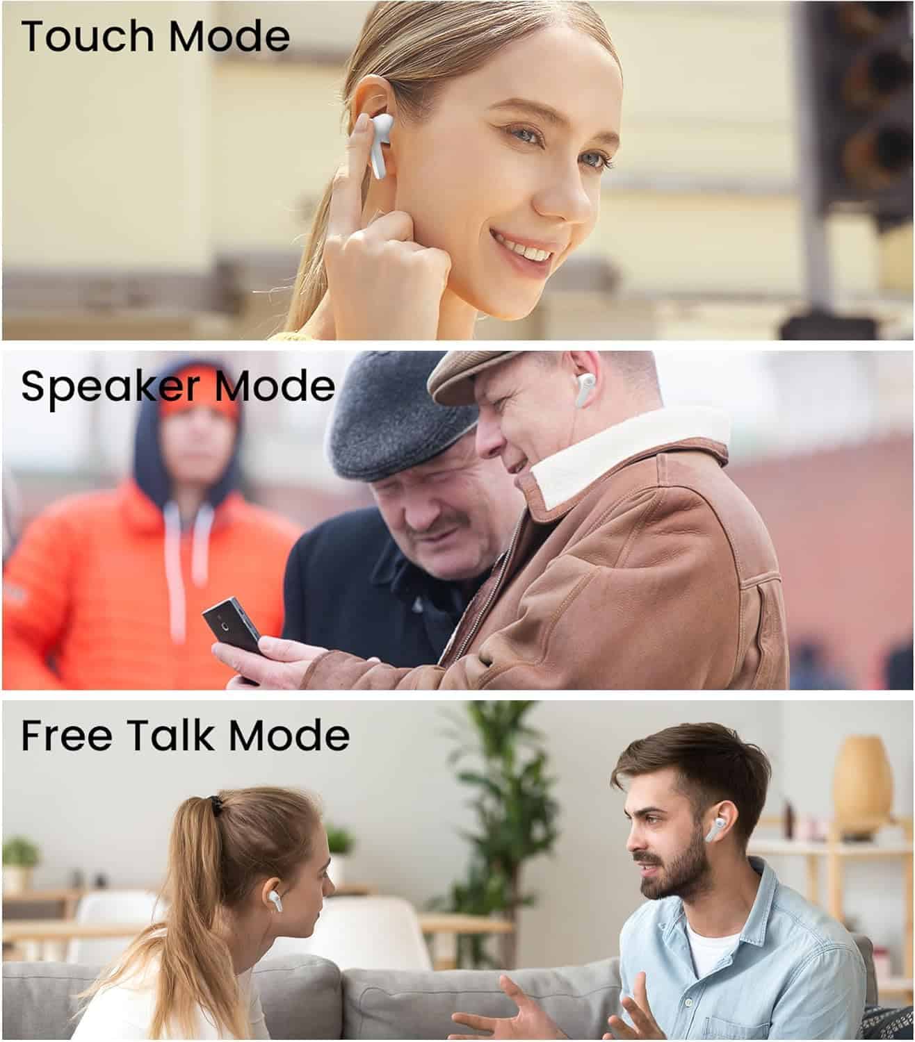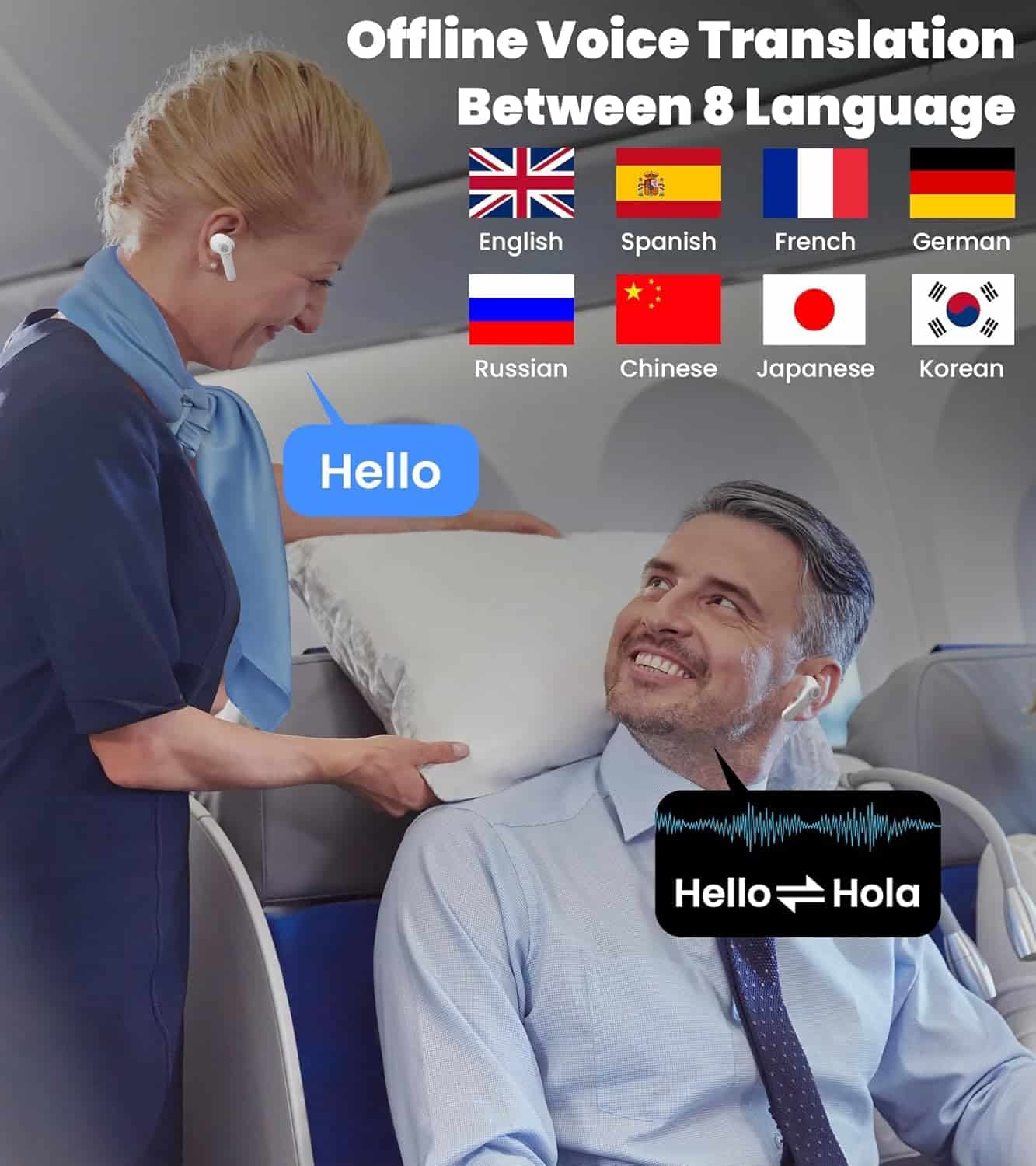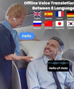 1. Audífonos Traductores Inteligentes de 3 Modos: Los audífonos traductores te brindan una experiencia de traducción sin igual. Funciona de manera efectiva para dos personas que los usen para conversaciones cara a cara. Modo Táctil: Interpretación simultánea para comunicación en profundidad; Modo Altavoz: Interpretación bidireccional para preguntas y respuestas cortas; Modo de Conversación Libre: El teléfono recogerá automáticamente las frases y las traducirá al idioma que necesitas.