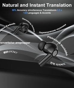 4. Audífonos Traductores 3-en-1: compatible con traductor, reproductor de música y llamadas telefónicas; el dispositivo traductor de idiomas tiene una larga vida útil de la batería, traducción rápida, tiempo de carga de 1.5 h, tiempo de escucha de 6 h; diseñado ergonómicamente para adaptarse a la mayoría de las orejas para un ajuste cómodo.