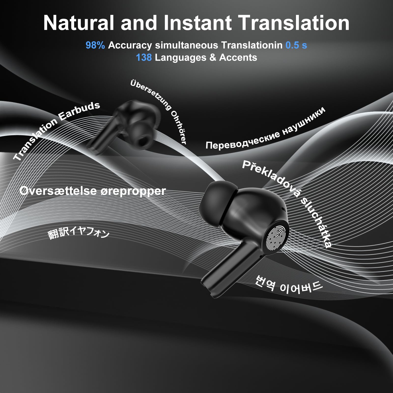 1. Audífonos Traductores Bidireccionales: admite la traducción en 138 idiomas y acentos, como árabe, chino, checo, holandés, inglés, francés, alemán, italiano, japonés, coreano, malayo, portugués, ruso, español, tailandés, etc.