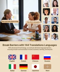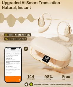 Traducción bidireccional en tiempo real con un 98% de precisión en 144 idiomas. Nuestros audífonos traductores ZYDIIE pueden cambiar de idioma de forma fluida para reuniones de negocios globales, viajes y comunicación intercultural. La versión mejorada de la aplicación de traducción inteligente de IA ahora incluye llamadas de voz y funciones de llamadas en tiempo real. Modos de traducción simultánea y de altavoz para una comunicación fluida. Audio de alta calidad con cancelación activa de ruido para una experiencia máxima en traducción, música y llamadas. Duración de batería de 5 horas con una sola carga y 60 horas con la caja de carga. Diseño ergonómico para un ajuste seguro y cómodo durante el uso prolongado. Modo de ruido blanco en la aplicación para mejorar la relajación y la calidad del sueño. Incluye audífonos traductores, caja de carga, cable USB-C y manual del usuario.