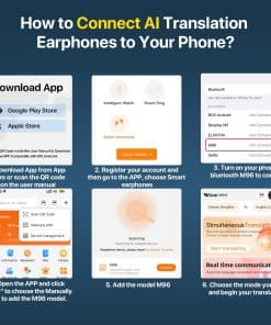 1. Traducción en tiempo real de 144 idiomas con inteligencia artificial con un 98% de precisión en todos los idiomas (CN/EN/JP/ES/FR/RU, etc.). Nuestros audífonos traductores ZYDIIE pueden cambiar sin problemas entre pares de idiomas para reuniones de negocios globales, viajes y comunicación intercultural.