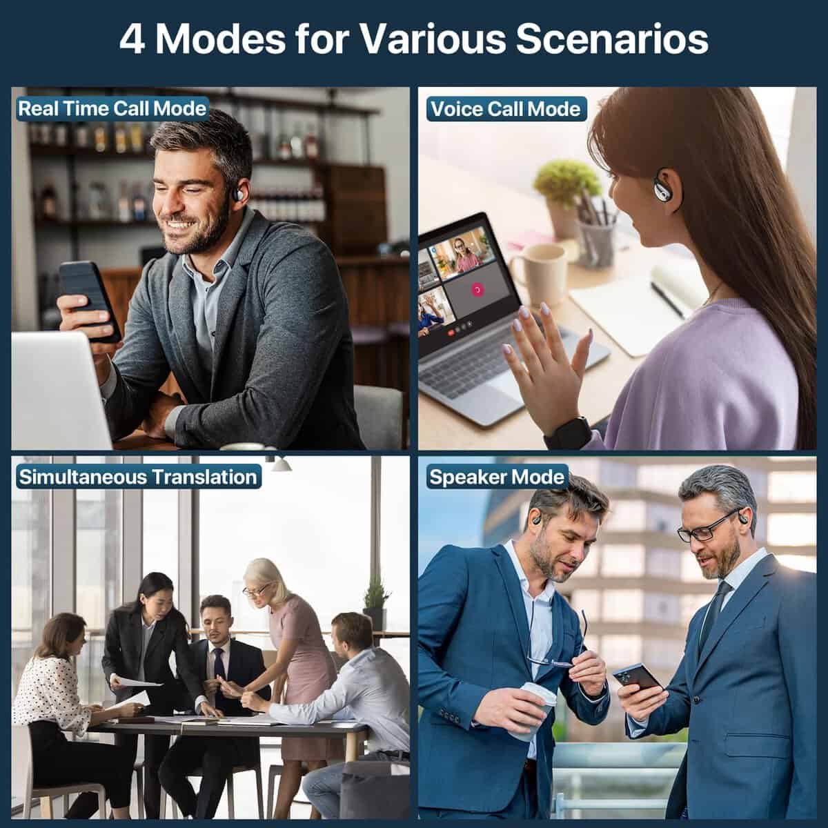 3. Calidad de sonido Hi-Fi y funcionalidad 3-en-1 de audífonos traductores. Nuestros audífonos traductores multifuncionales ZYDIIE integran funciones de traducción, reproducción de música y llamadas telefónicas, proporcionando comodidad a los usuarios. Además, con audio de alta calidad que le permite disfrutar de una experiencia de tecnología de sonido envolvente 360°. Ofrece traducciones, música y llamadas envolventes y cristalinas, garantizando una experiencia auditiva cómoda incluso en entornos ruidosos, gracias a la cancelación activa de ruido.