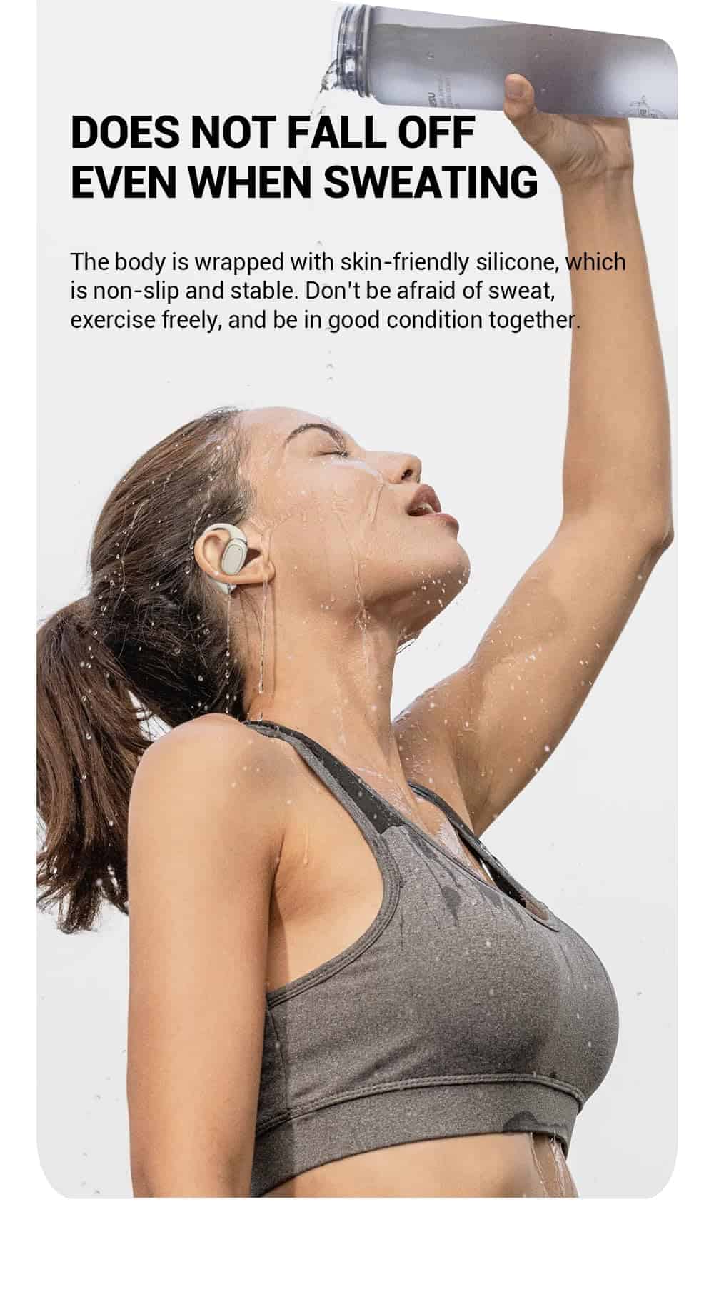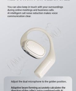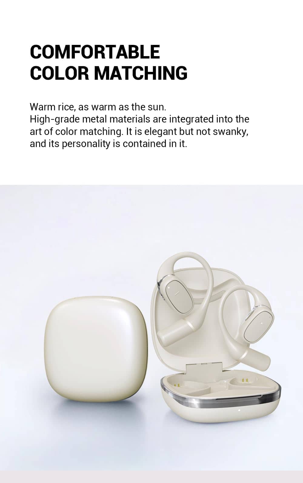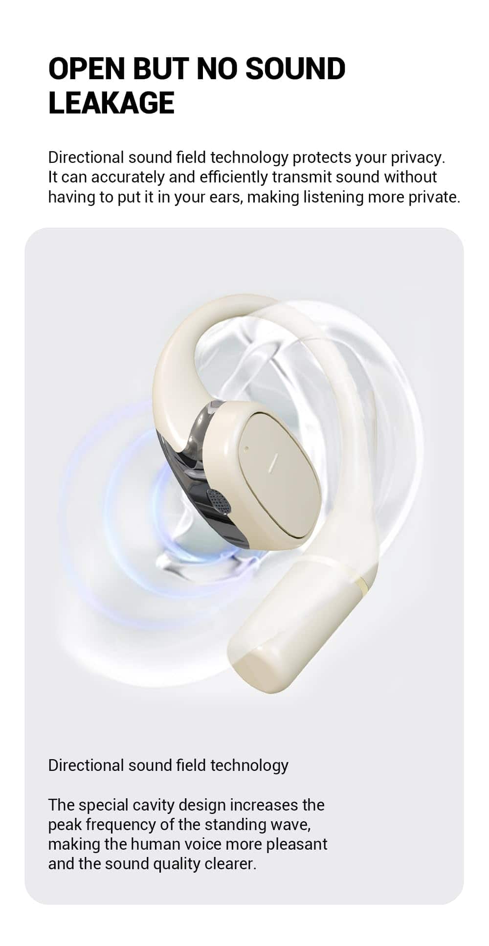 WolfBite Open Fit OWS son los audífonos perfectos para aquellos que buscan comodidad y calidad de sonido. Con tecnología de seis núcleos que ofrece un ajuste ergonómico, bajo potente, sonido direccional, reducción inteligente de ruido, clasificación impermeable IP54 y hasta 28 horas de reproducción, estos audífonos te permitirán disfrutar de tu música favorita con la mejor calidad. El diseño de ajuste abierto es ligero y cómodo para usar todo el día, y el Bluetooth 5.3 garantiza una conexión inalámbrica rápida y estable. La calidad de sonido Hi-Fi te sumergirá en la música con detalles impresionantes, mientras que los auriculares de silicona suave y sedosa son resistentes a la piel y evitan fugas de sonido. ¡No más dolor de oídos con los audífonos WolfBite Open Fit OWS!