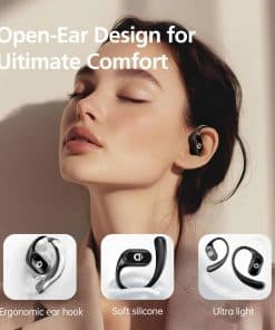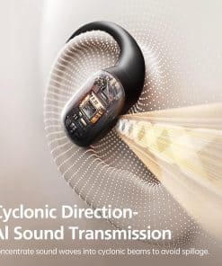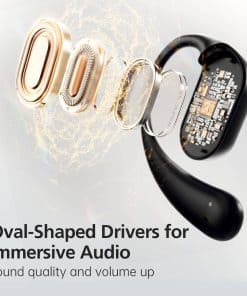 Audífonos Yistao de oreja abierta con 35 horas de reproducción, verdaderos auriculares inalámbricos de conducción de aire con ganchos para las orejas, Bluetooth 5.3, diseño resistente al agua IPX6, ajuste cómodo y seguro para deportes. Cada auricular inalámbrico pesa solo 0.26 oz, fabricado con un marco de aleación de titanio de 0.7 mm y almohadillas de silicona ultra suaves. El marco de memoria se adapta a la forma de tu oído, y la silicona suave los mantiene cómodos todo el día. Equipados con unidades acústicas ovales avanzadas de 15 mm, estos auriculares de conducción de aire ofrecen un sonido de alta calidad en un amplio rango de frecuencias. La tecnología AreoDirect evita la fuga de sonido, y AreoBoost mejora las voces para una experiencia de audio más inmersiva. Con Bluetooth 5.3, disfruta de una velocidad de transferencia de 48 Mbit/s y un impresionante rango de 300 m. La baja latencia de 60 ms mantiene tu música perfectamente sincronizada, garantizando una experiencia de audio inmersiva con nuestros auriculares de oreja abierta. Estos auriculares de conducción de aire tienen un revestimiento hidrófobo en las rejillas del micrófono y el altavoz, junto con un revestimiento nanocapas doble y tecnología resistente al agua IPX6, lo que los hace resistentes a la lluvia ligera y al sudor durante entrenamientos intensos. Con carga rápida, disfruta de hasta 10 horas de música con una sola carga. Combinado con el estuche de carga, puedes experimentar estos auriculares de oreja abierta hasta 35 horas de reproducción continua, convirtiéndolos en tu compañero ideal para escuchar todo el día.