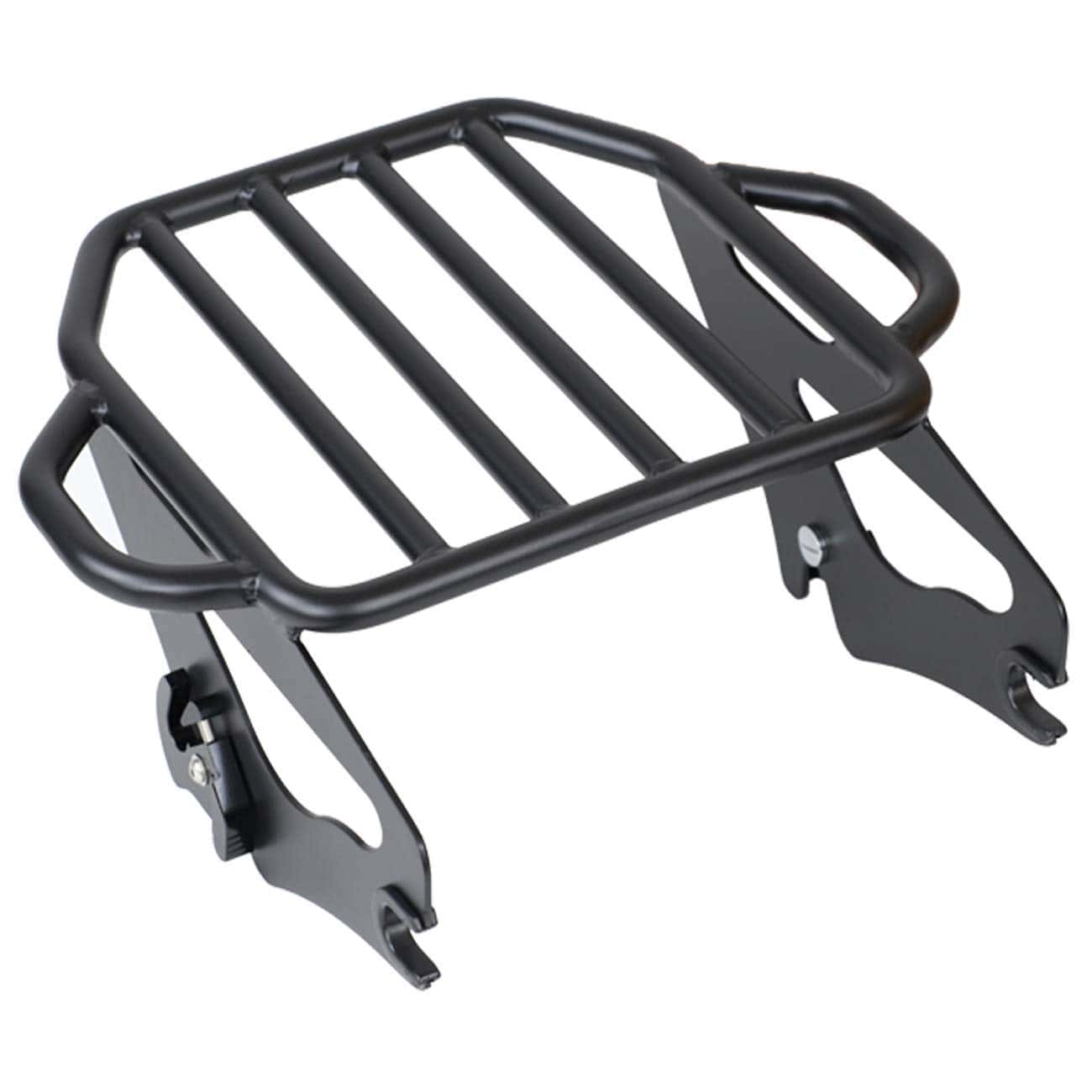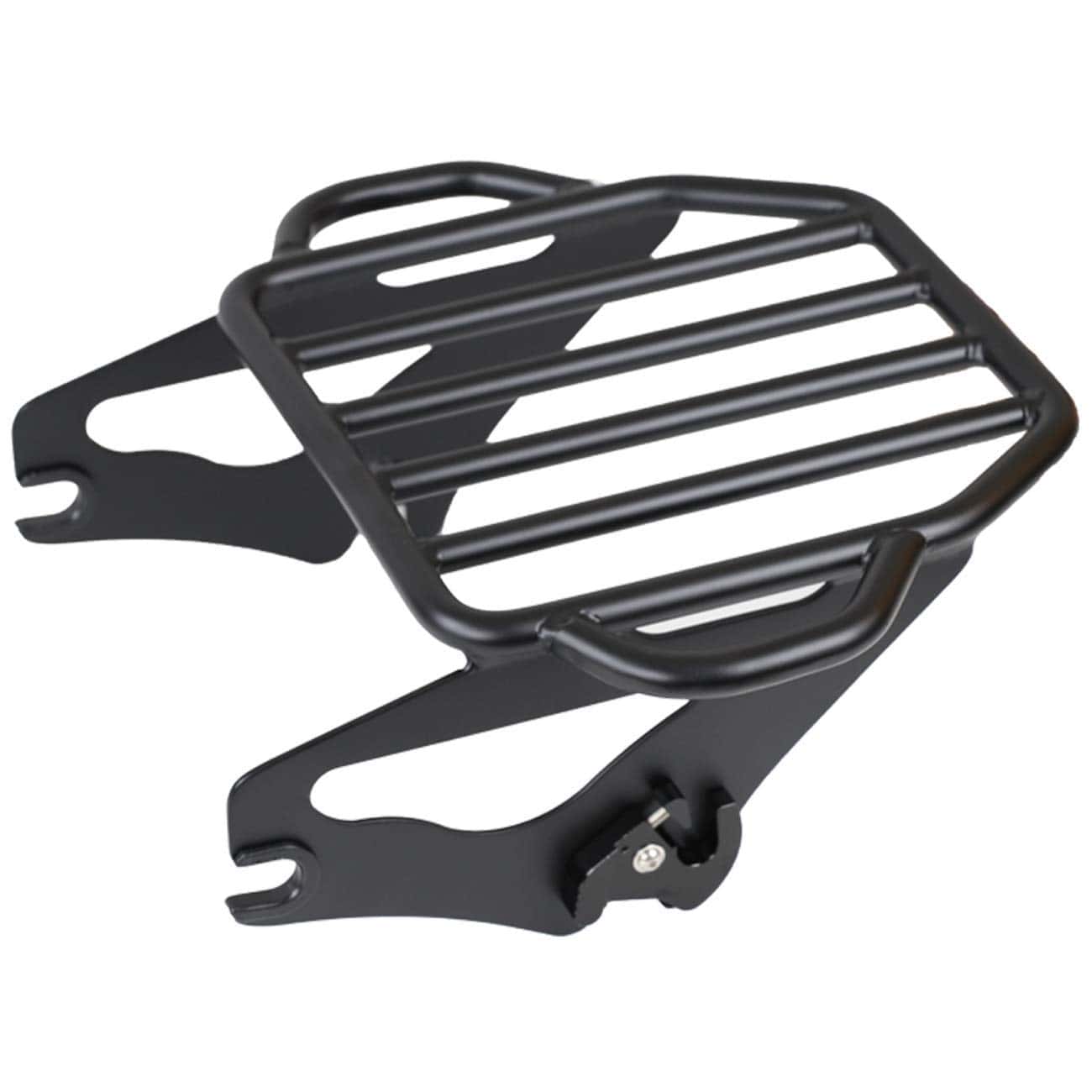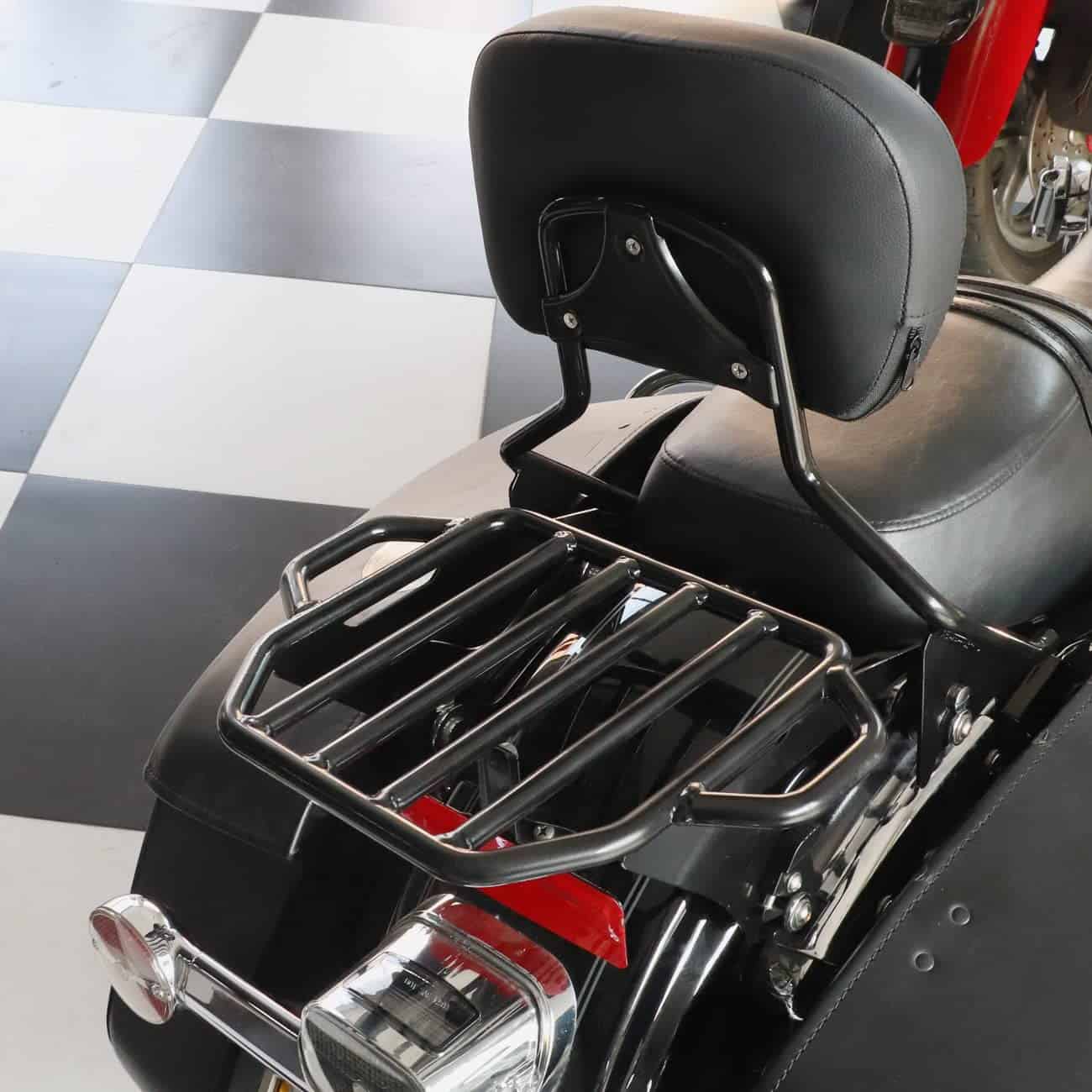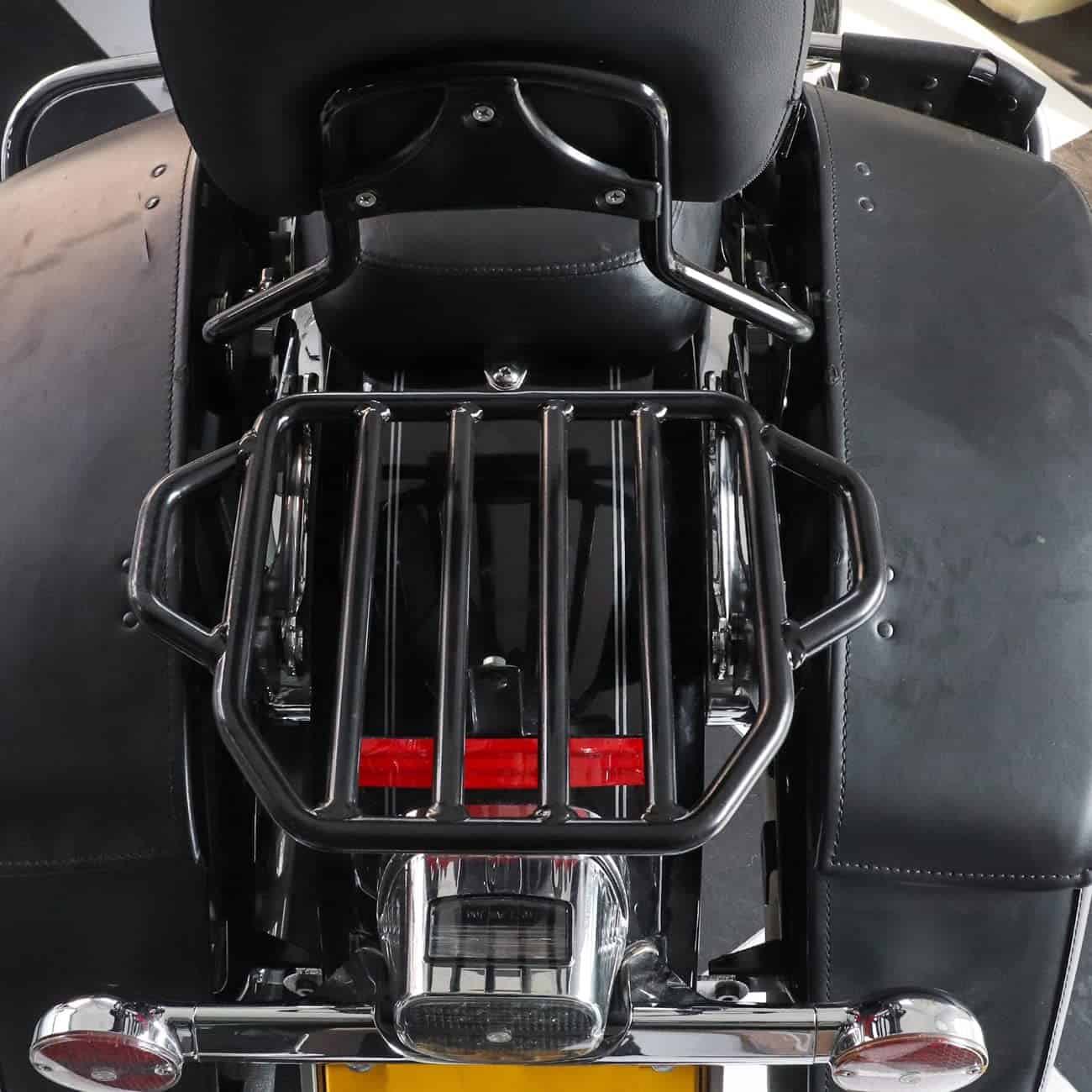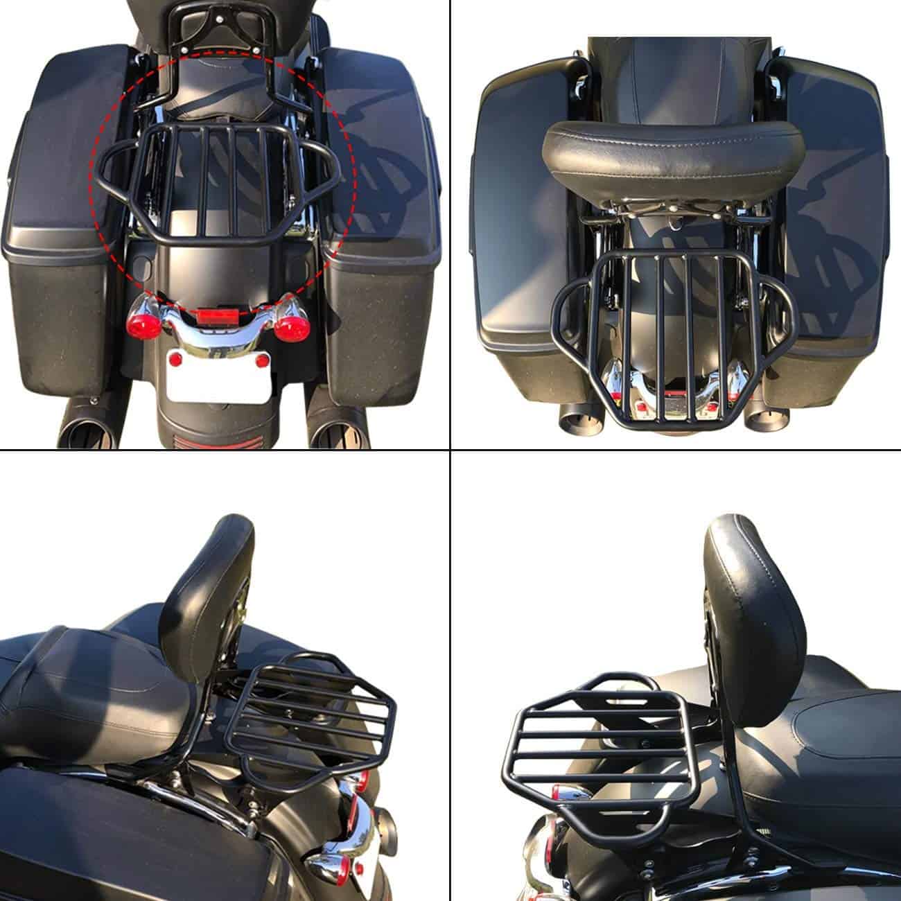 El portaequipajes está fabricado en hierro de alta calidad, resistente al desgaste, a la corrosión y los arañazos. Acabado en negro para evitar daños en la superficie. Las extensiones laterales ofrecen una superficie de carga plana y versátil. Compatible con modelos Touring a partir de 2009 equipados con el kit de hardware de anclaje de 4 puntos. Requiere la compra de un kit de conversión de Tour Pack desmontable para modelos Touring equipados con equipaje Tour Pack de montaje rígido. Modelos FLHX FLHXS FLTR y FLTRX requieren la compra por separado de un kit de reubicación de antena o kit de antena oculta. Algunas placas de matrícula de la UE pueden interferir con el portaequipajes. Fácil de instalar y quitar, no requiere perforaciones ni modificaciones. Incluye portaequipajes desmontable negro de dos plazas y clip de cierre. Nota: Requiere la compra por separado del kit de hardware de anclaje de 4 puntos (no incluido). (Garantía de calidad de 18 meses)