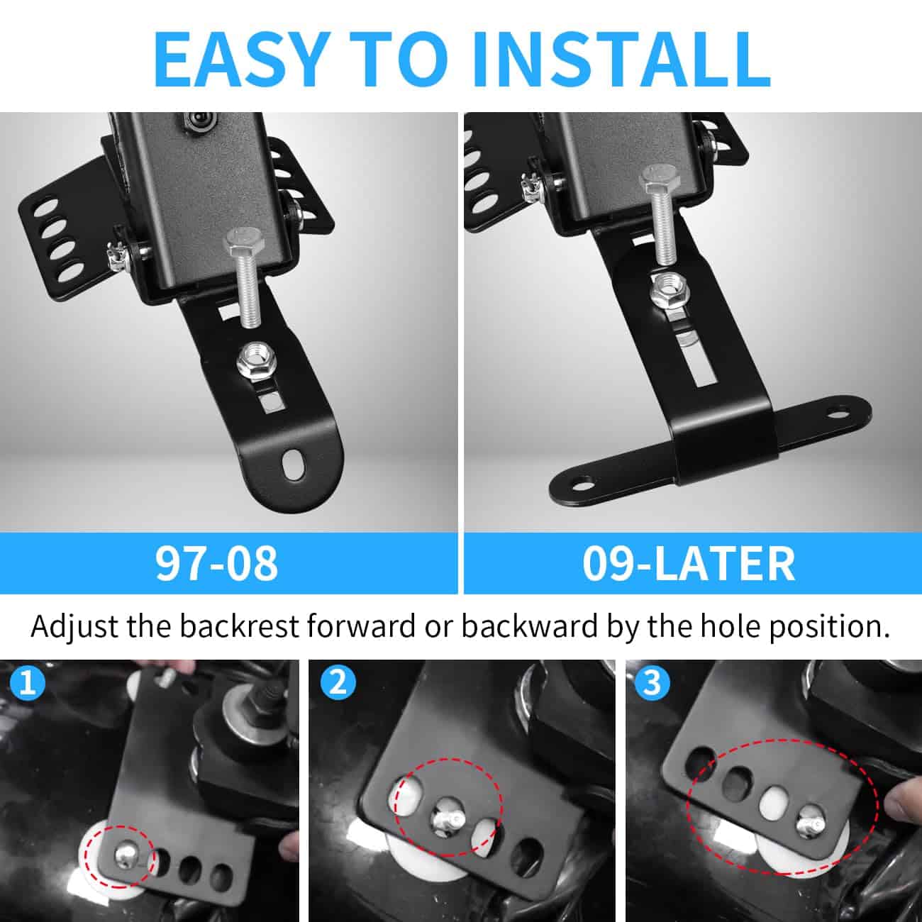 El respaldo está hecho de material de alta calidad, resistente al desgaste, a los arañazos y al óxido. Ajustable en altura con 6 orificios. Diseño delgado con bolsillo de almacenamiento. Compatible con modelos Touring desde 1997 en adelante. Proporciona soporte lumbar sin empujar al conductor hacia adelante. Incluye accesorios para una fácil instalación y decoración perfecta para tu motocicleta.