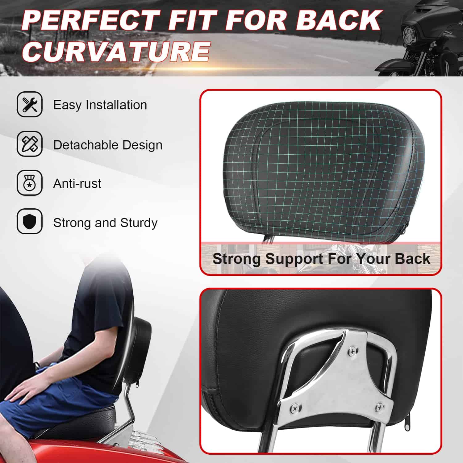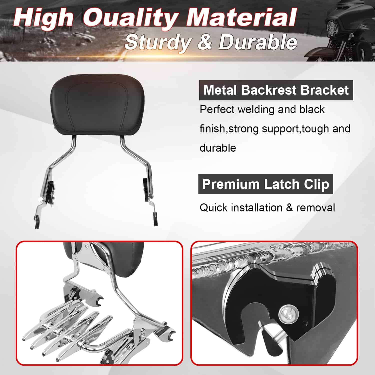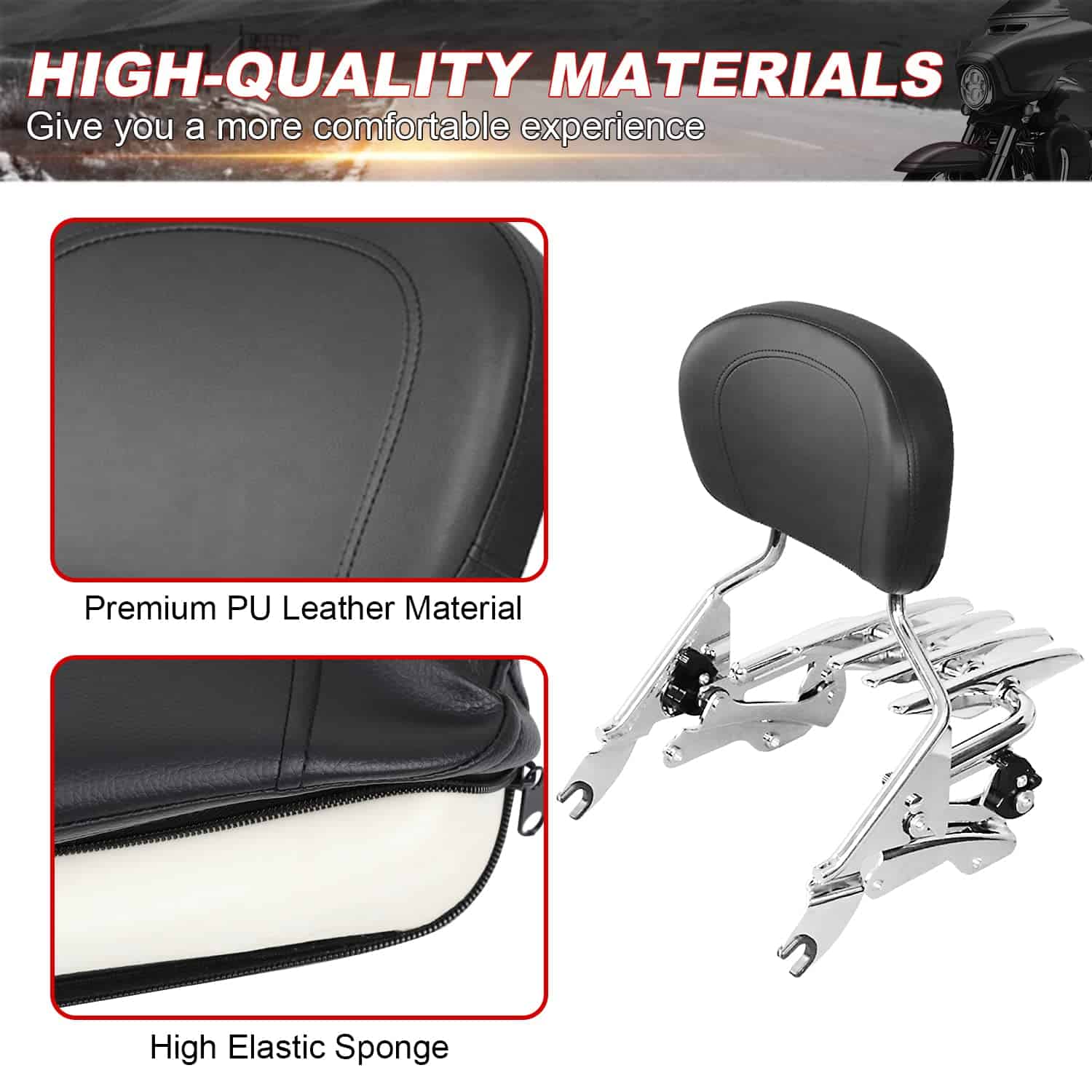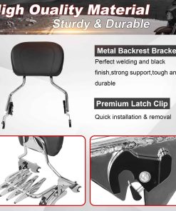 Descripción detallada del producto que destaca las características clave y la compatibilidad con los modelos de motocicletas mencionados. Incluye información sobre el material de fabricación, las propiedades de durabilidad y resistencia, así como la comodidad que proporciona a pasajeros durante viajes prolongados. También menciona la importancia de la compatibilidad con los distintos modelos de motocicletas para garantizar un ajuste adecuado y un aspecto visual mejorado. El paquete incluye todos los componentes necesarios para la instalación y el uso del producto.
